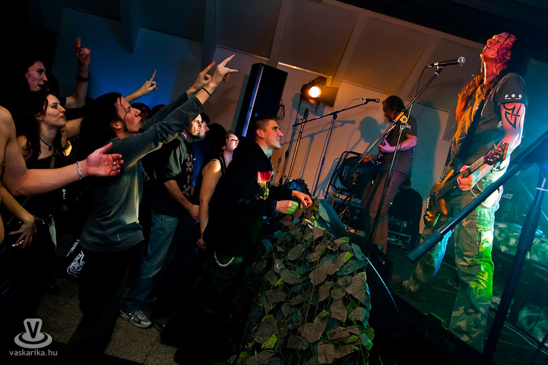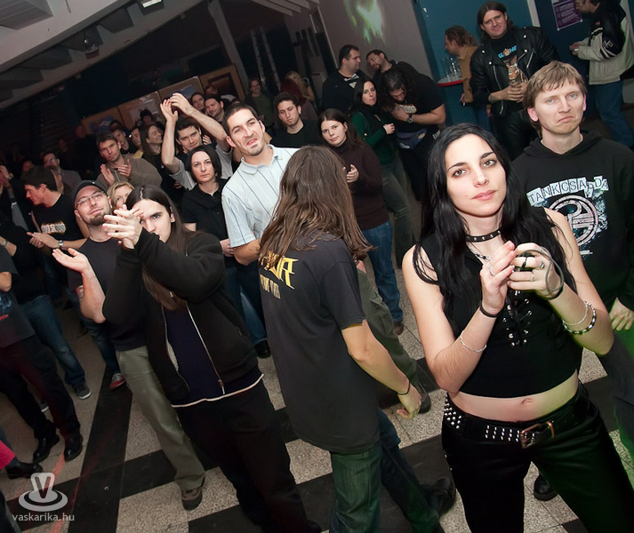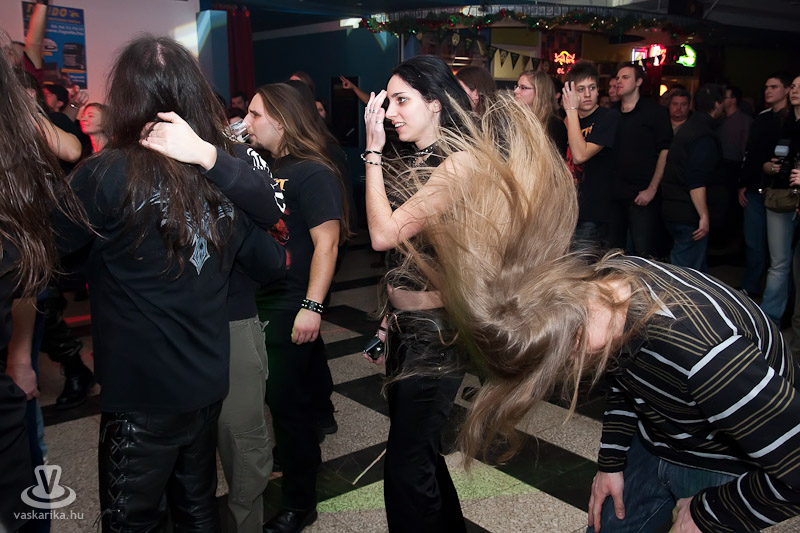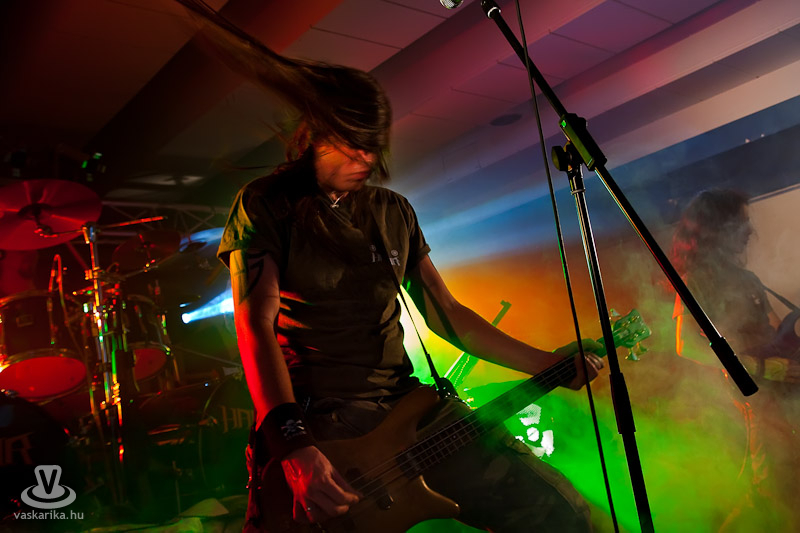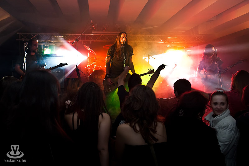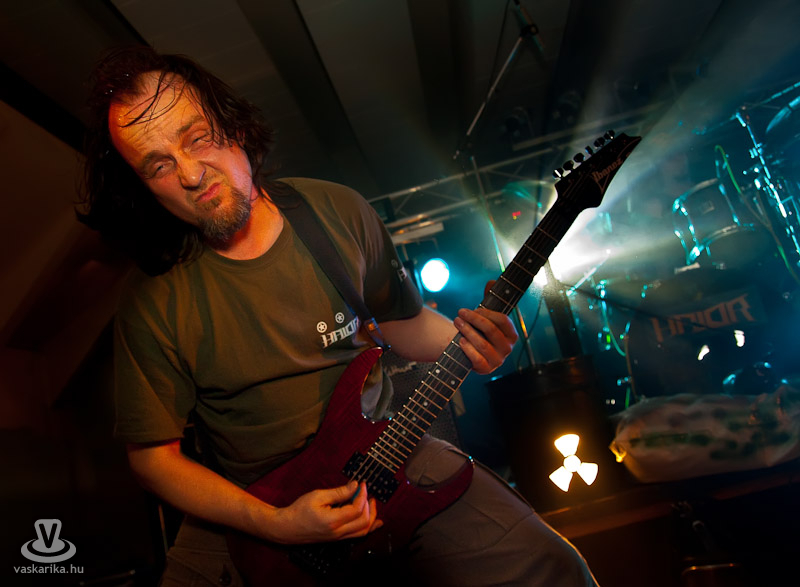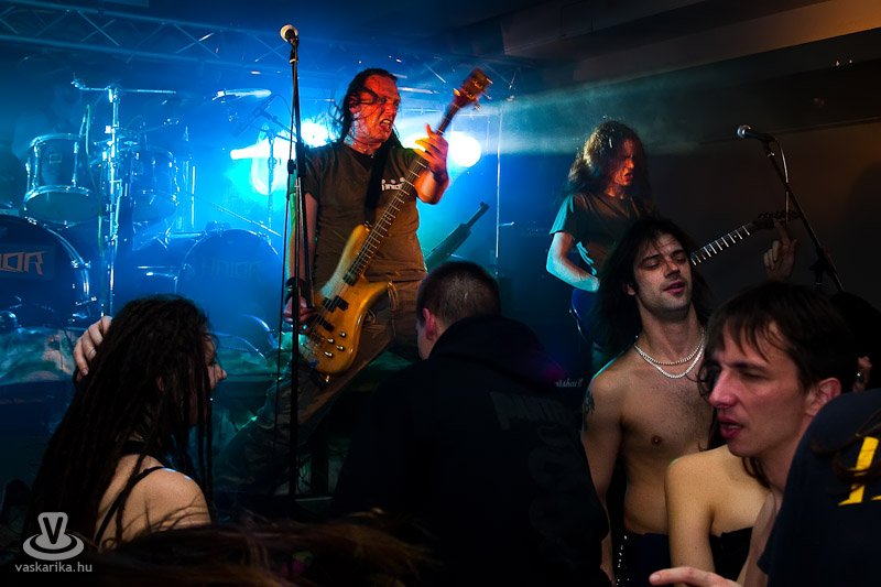Nyilván az olvasók többségének nem kell mélyrehatóan ecsetelni az olaszok után következett attrakciót, hiszen a megjelentek zöme miattuk perkálta ki a beugró árát. Félreértések elkerülése végett a Halőr, akarom mondani a Halor nem egy gátvédő egyesület, hanem egy metal zenekar. Nem is akármilyen. Ráadásul éppen mostanság ünnepli fennállásának tizedik évfordulóját, ami akárhogy is nézzük, azért vízválasztó mindig egy heavy metal együttes életében. Járókeretes nosztalgiaműsorról persze szó sem volt, teljesen megosztva szemezgettek Komondi Ákosék (ének/basszer) az eddigi életműből. Volt dal, ami az évek folyamán gyakorlatilag egybeforrt a zenekar nevével és volt, ami még eddig rögzített formátumban nem is jelent meg. Alapvetően a korai nóták hordozzák a csapat kezdeti dallamos heavy metal énjét, míg a friss szerzemények már jelentősen feszegetik a stílus adta határokat, nem egyszer átcsapva keményebb thrashre hajazó elemekbe. A kezdetek óta árgus szemekkel követjük a Halor pályáját, és a legfeltűnőbb fejlődést az ének terén tapasztaljuk. Ákos kezdetekben sokat támadott hangja mára már lényegesen kifejezőbb, valamint kevesebb fals csúszik be, keményvonalas kántálása pedig tökéletesen passzol az újabb dalokhoz. Személyes kedvencünk, a No Way Out is elhangzott, így saccperkábé éjfélre a zenekar már meg is vett minket kilóra. Csakúgy, mint népes hallgatóságát, akik közül sokan ezentúl sutba dobják majd az Update Norbi féle videókazettákat és legközelebb biztosan Halor koncertre jönnek mocorogni.
