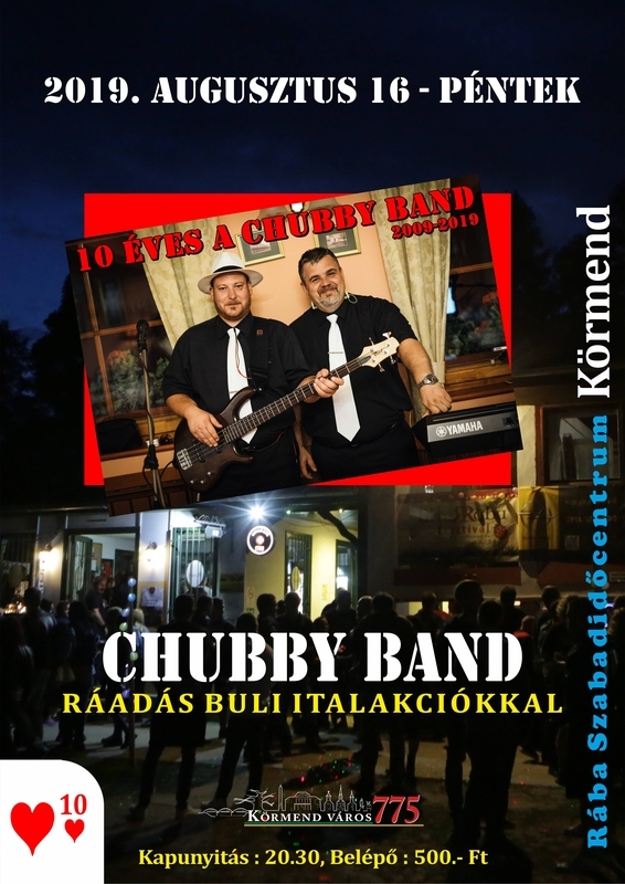 Augusztus 16-án a 10 éves Chubby Band ad hangulatos műsort, 21 órától. Belépő 500.- Ft, kapunyitás 20.00.