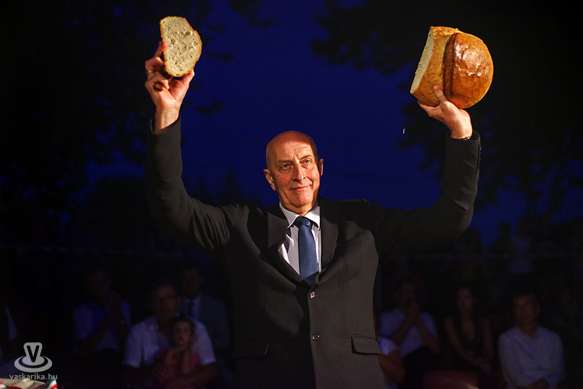 Az ünnepi beszédet követően került sor az új kenyér megáldására, melyhez a Magyar Kajak-Kenu Szövetség utánpótlás válogatottjának tagjai hozták a folyón a nemzeti színű szalaggal átkötött kenyeret, és adták át Bebes István polgármesternek, aki felvágása után körbekínálta a jelenlévők közt.