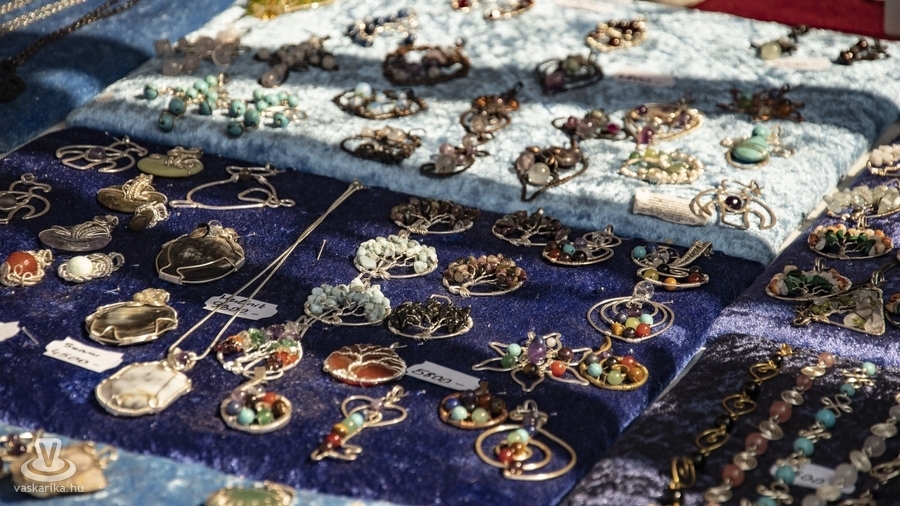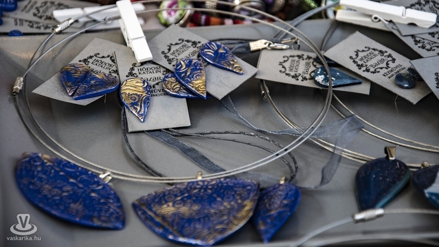 Hódosi Katalin munkái égetett gyurmából készülnek. Egyedi kialakítású, kacskaringós vonalú, aszimmetrikus, ugyanakkor gyönyörű termékeit kínálja a nézelődőknek. A hölgyek nem biztos, hogy a stand előtt el tudnak úgy menni, hogy akár csak egy fülbevalót ne vásároljanak maguknak.