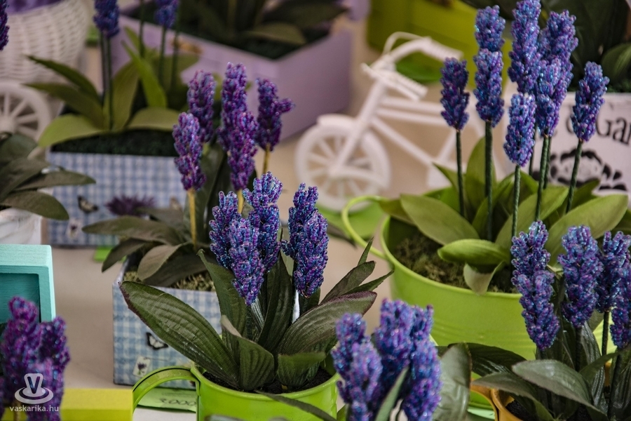 Gyöngyből fűzött ékszerekkel és virágokkal várja a nézelődőket Kővágóné Papp Edina.