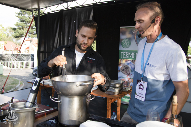 A következő nap egy ismert és népszerű fiatal séf mutatta be főzőtudományát: Rácz Jenő Michelin csillagos séfet köszönhettük a színpadon. Soha eddig nem látott tömeg érkezett a színpad előtti kordonokhoz, ami olyan érzés volt, mintha egy koncerten lettünk volna. A sztárséf sokat mesélt a szakmai életéről, hol - hogyan és milyen körülmények között kezdte és folytatta a szakácsmesterséget. Közben persze készítette az ételt is: Szép Bence közreműködésével hollandi mártás készült, ami alapvetően egy meleg majonézmártás és egyben beugró alaptudás a séf konyhájába. Az étel fő eleme a karfiol volt, amit szó szerint megégetett a séf, utalva arra, hogy a sütésnél kicsit leégett szélek általában a legfinomabb falatok. És valóban, a hollandi mártásra „ültetett" égetett karfiol mellé savanyított kínai (shimeji) gomba került, majd parmezánhab. Az egészet megkoronázta a szárított marhapofa-por, aminek segítségével az ötödik ízt, azaz az umamit is megkóstolhattuk. Érdekes volt és finom.