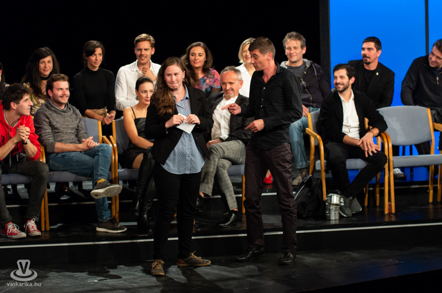 A színházteremben a nézők által az este során összegyűjtött kérdésekre válaszoltak a társulat tagjai. Elsősorban személyes élményekre, tapasztalatokra voltak kíváncsiak, de felmerült az a kérdés is, hogy miért használnak annyi trágár kifejezést az előadások során. Kis ízelítőt kaptunk a színházi etikettből is, avagy hogyan ne viselkedjünk előadás közben. Azt is kipróbáltuk, hogyan hangzik, amikor a nézők mobiltelefonjai egyszerre szólalnak meg.