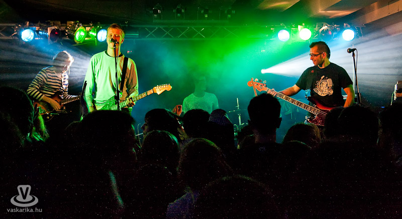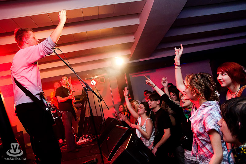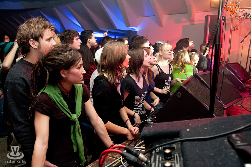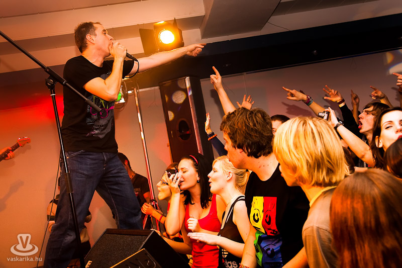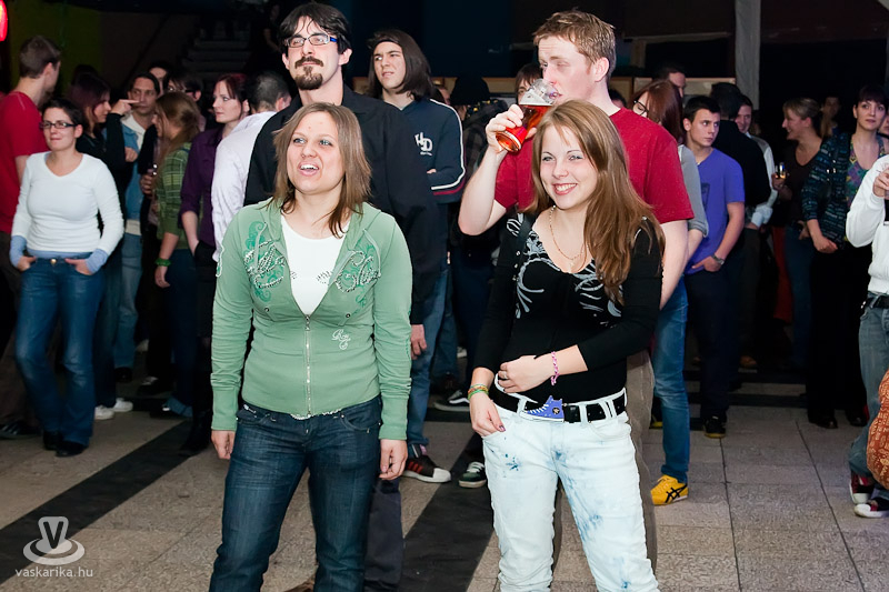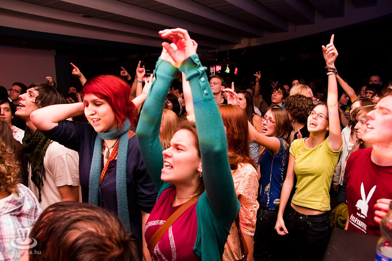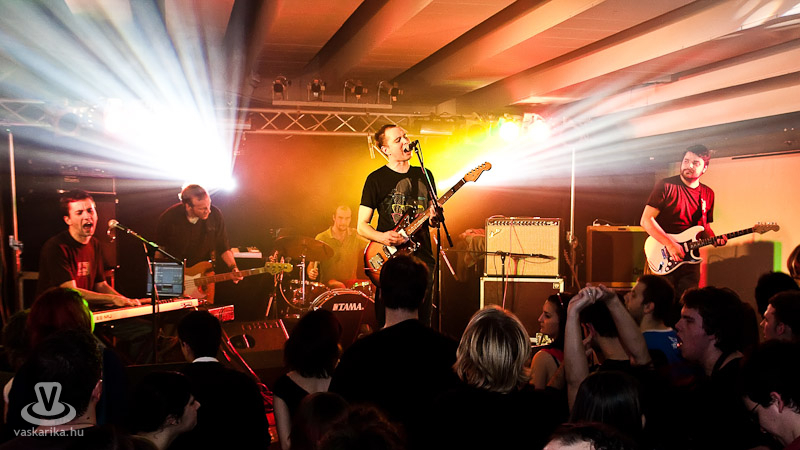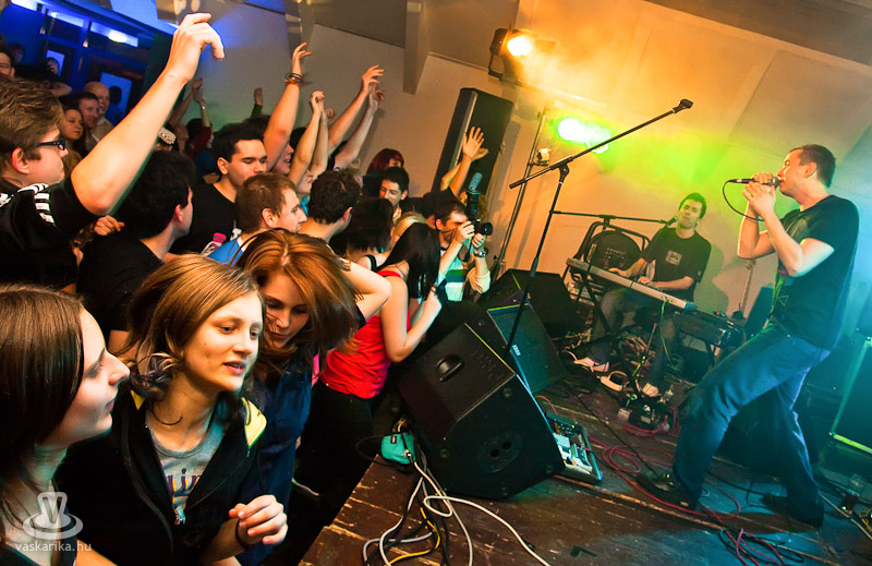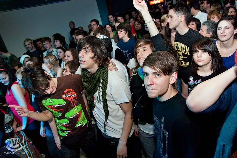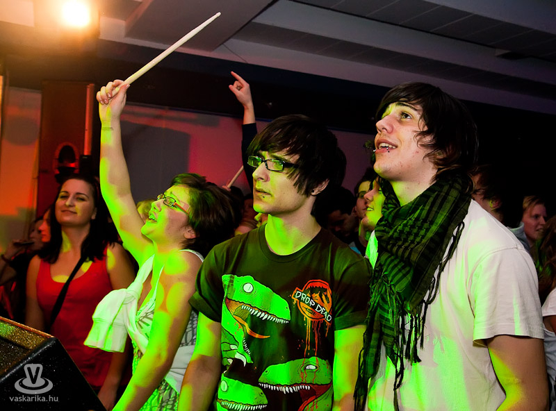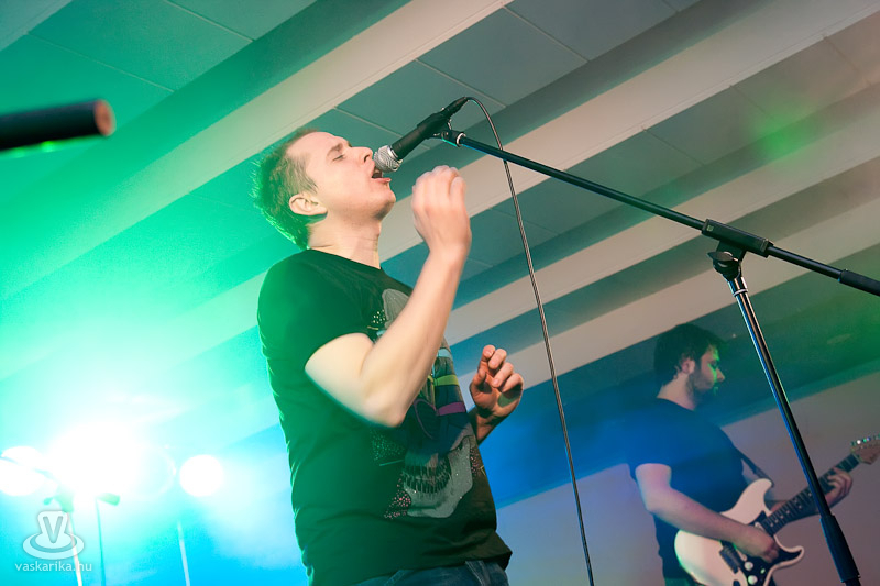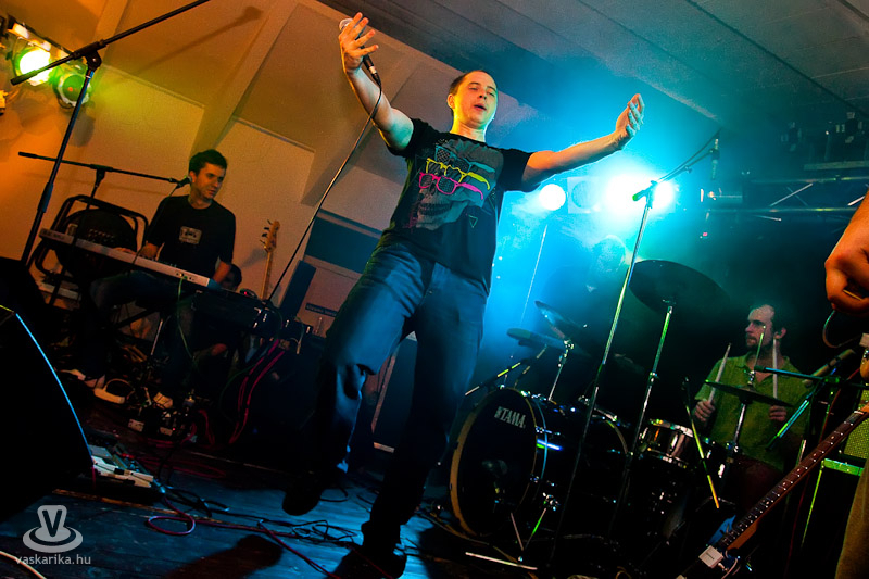 Másrészt a buli vonalvezetése sem jött ki okosba, hisz az alig ismert Nils együttes enyhén befordulós zenéje, és gigászi hangereje inkább riasztotta a nézőket a színpadtól, mintsem hogy csalogatta volna őket. A zenekar amúgy egész ügyes zenészekből áll, hallhattunk ígéretes dalokat tőlük, a hallottak alapján azonban nem tudunk reális értékelést adni róluk. Nem szóltak szépen, viszont nagyon hangosan, és ez a tendencia sajnos szinte az egész estét végigkísérte. Amit még hozzátennénk a produkciójukhoz, az mindösszesen annyi, hogy javasoljuk énekesüknek azt, hogy mint nyitóbanda fogadják el a szinte még színjózan közönségtől azt, hogy ha már megvette a belépőt, és meg is hallgatja a produktumot, hadd álljon oda ahova úri kedve tartja. Ismeretlen zenére, buli elején, Szombathelyen nem életszerű a ház oldalának kirugdalására számítani ugyanis.