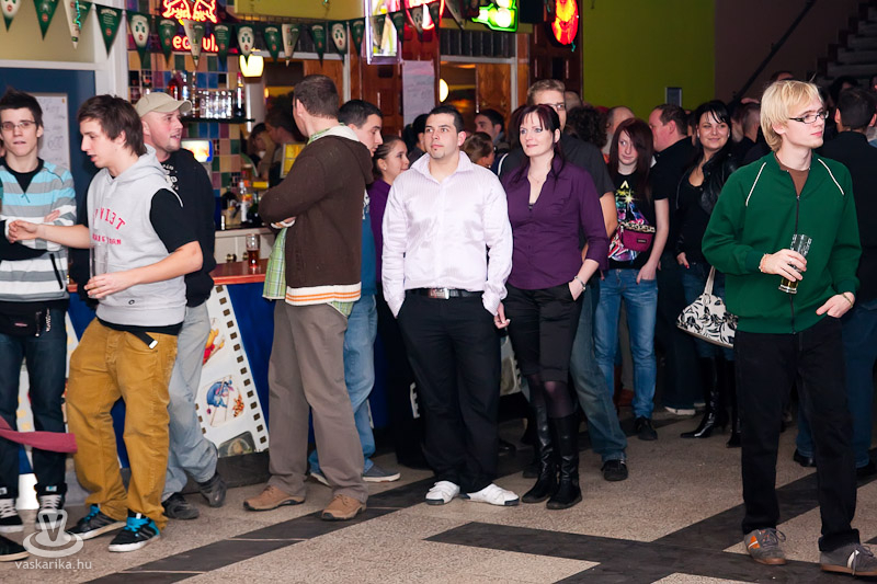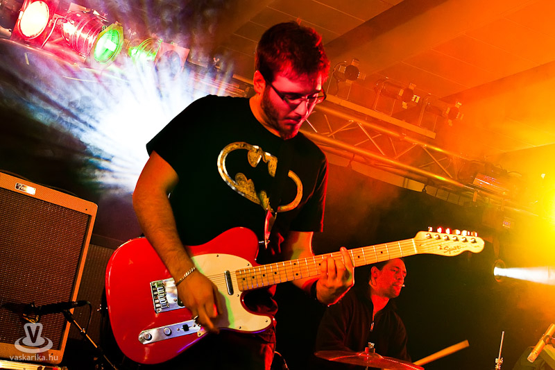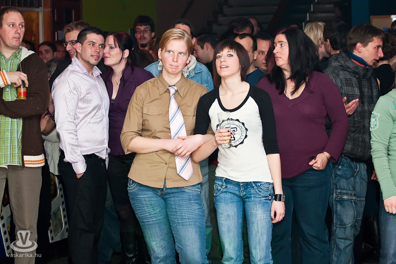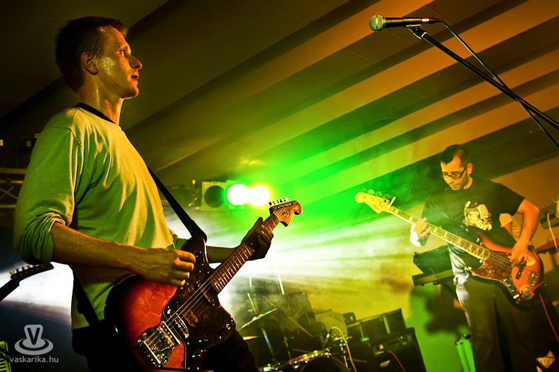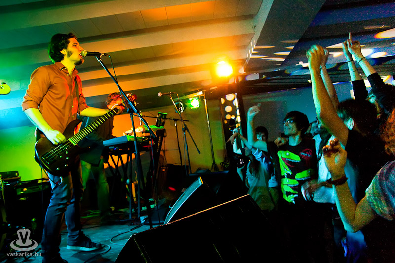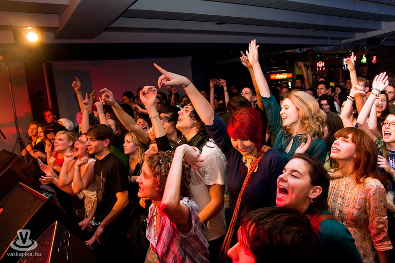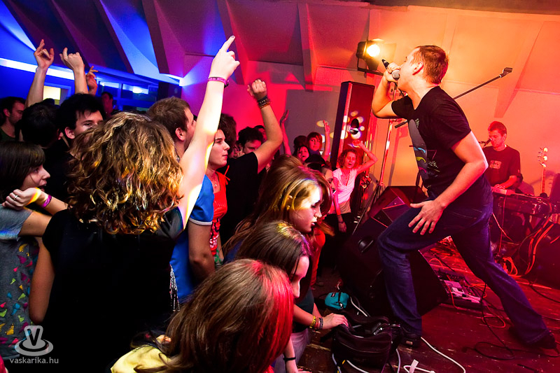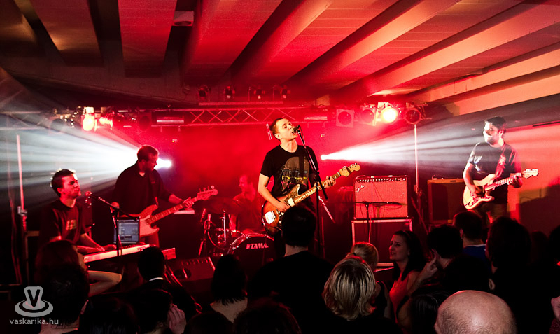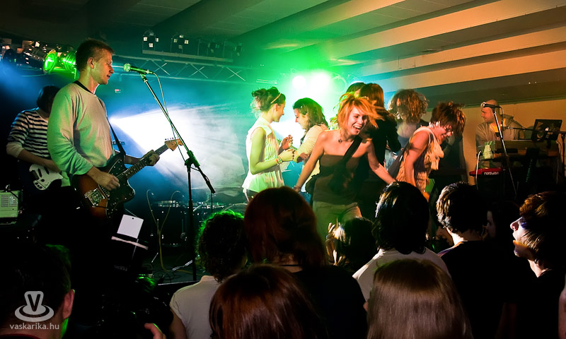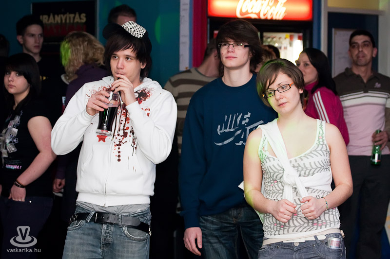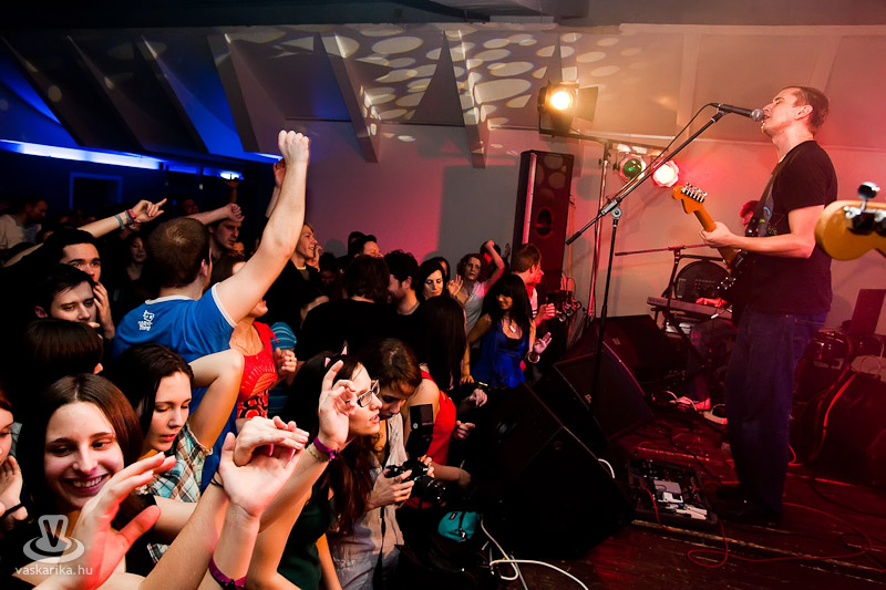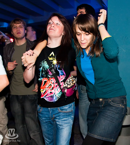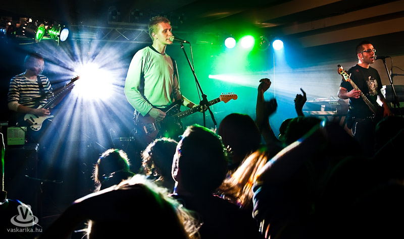 Másrészt a buli vonalvezetése sem jött ki okosba, hisz az alig ismert Nils együttes enyhén befordulós zenéje, és gigászi hangereje inkább riasztotta a nézőket a színpadtól, mintsem hogy csalogatta volna őket. A zenekar amúgy egész ügyes zenészekből áll, hallhattunk ígéretes dalokat tőlük, a hallottak alapján azonban nem tudunk reális értékelést adni róluk. Nem szóltak szépen, viszont nagyon hangosan, és ez a tendencia sajnos szinte az egész estét végigkísérte. Amit még hozzátennénk a produkciójukhoz, az mindösszesen annyi, hogy javasoljuk énekesüknek azt, hogy mint nyitóbanda fogadják el a szinte még színjózan közönségtől azt, hogy ha már megvette a belépőt, és meg is hallgatja a produktumot, hadd álljon oda ahova úri kedve tartja. Ismeretlen zenére, buli elején, Szombathelyen nem életszerű a ház oldalának kirugdalására számítani ugyanis.