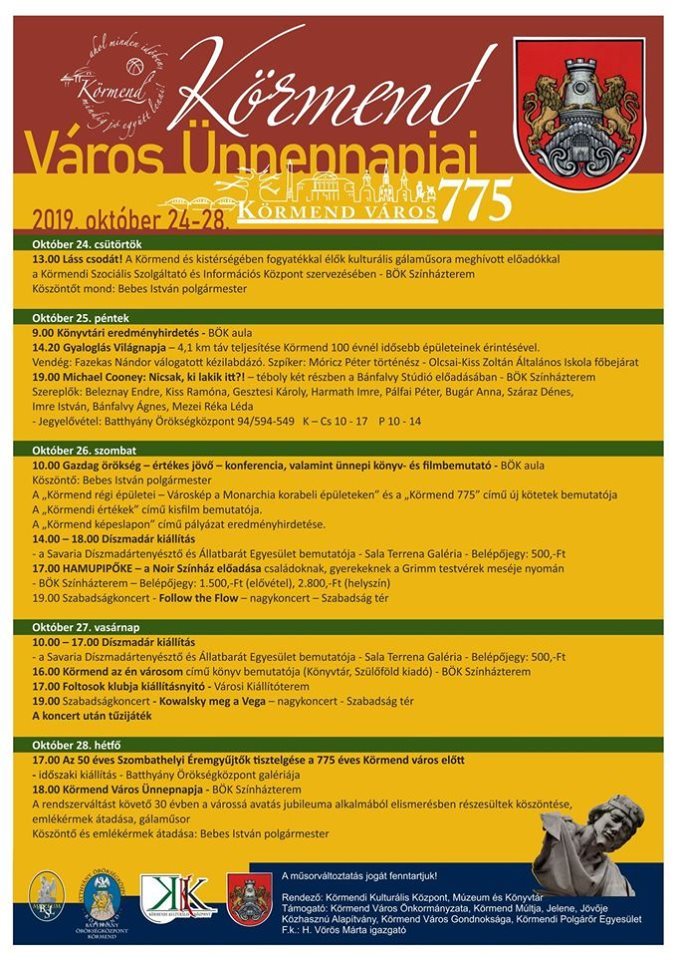 Körmend Város Ünnepnapjai 2019 részletes programja (okt. 24-28.)