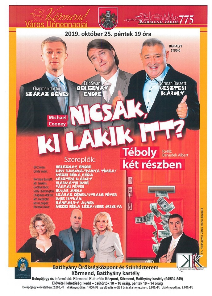 19.00 Michael Cooney: Nicsak, ki lakik itt?! - téboly két részben a Bánfalvy Stúdió előadásában - BÖK Színházterem