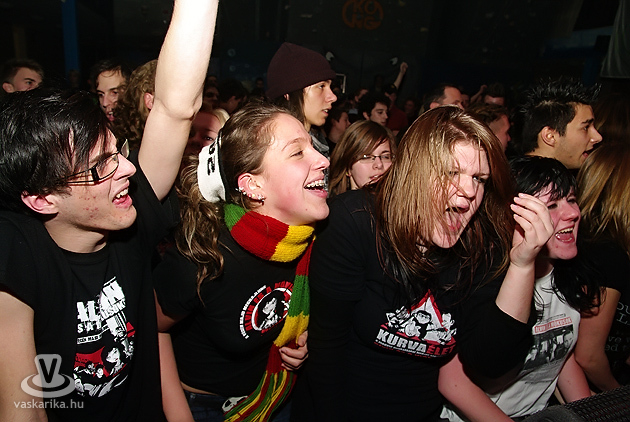 A hovatartozás egzakttá tétele végett eljátszottak egy örök klasszikust is, szólhatott a Belfast, kicsit másként, kicsit erőtlenebbül és hiteltelenebbül, de legalább ez ismerősen csengett a hallgatóság fülében, és kénytelenek voltak ugrálni. Itt szerencsénkre azért fotósunk befutásával sikerült az átlagéletkort a "majdnemtizenhétről" 17-re feltornászni, de ez a helyzetünkön már nem sokat segített, kezdődött is a Tatu 18. És ezt a "kezdődött is"-tet, ezt így is kell elképzelni, pillanatokon belül átszereltek a zenekarok. Marci már kora este beállította őket, így a hangosítással sem kellett bíbelődni, bár nem ártott volna, mert a középtartományból nem sok hanghoz volt szerencsénk. Az biztos, hogy a zenekarnak dumából és hangulatforrósításból odaadhatjuk a jelest, leülhetnek. Megtudtuk, hogy 12 iwiw-ismerőse van a tatai bandának - aki esetleg párhuzamot vonna a település és a nevük között, azoknak elmondjuk, hogy nincs semmi összefüggés az alliteráción kívül -, ebből egy Donna, a kutya, aztán a szülők és a testvérek. Alig vártuk, hogy ha már egész évben nem, legalább most hallgathassunk olyan zenét, ahol a bőgő úgy szól, mintha egy kartondobozt fűrészelnének, és részt vehessünk egy olyan rendezvényen, ahol gátlástalanul lehet káromkodni, ha meg nem teszed, meg sem hallanak. Az utóbbi időben a Prosecturaval turnézó zenekar ebben is kitett magáért, igazi ős-punk bulit csináltak, és érdemes volt nagy kínszenvedések árán, nagyon messziről, nagyon tehénlepénybe lépett szagúan ideutazniuk. Hálás volt a közönségük is, ha tapsolniuk kellett tapsoltak, ha pogózni, akkor meg pogóztak. Év végére azért csak megjön Szombathely hangja.