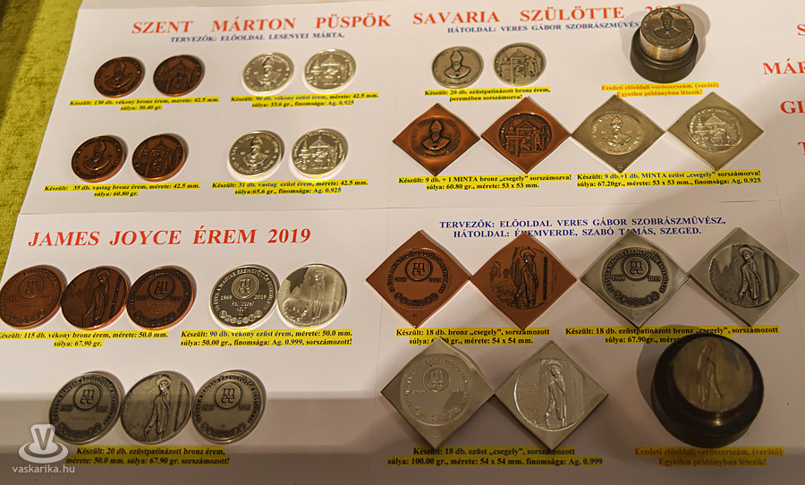 Nagy Ferenc a többi vitrinben levő érmékről beszélt. Az egyikben igazi numizmatikai kuriózumként régi idők pénzeit lehet látni, Kr. előtti korból, IV-V. századból, római, egyiptomi, kelta érméket, illetve különlegesen ritka Delhi-i és bizánci pénzeket, de láthatóak IV. Béla idejéből származó eredeti ezüstdénárok is. Külön tárlóban tekinthetők meg a Körmenddel kapcsolatos plakettek és érmek - ezek Nagy Ferenc tulajdonában vannak, de a kiállítás után a körmendi múzeumnak ajánlotta fel őket -, illetve ugyanabban a vitrinben a kiállítást személyesen is megtisztelő Kékesi Gábor szobrász alkotásai. A negyedik tárlóban Szombathely érmeiből, plakettjeiből szerepel 40 darab.