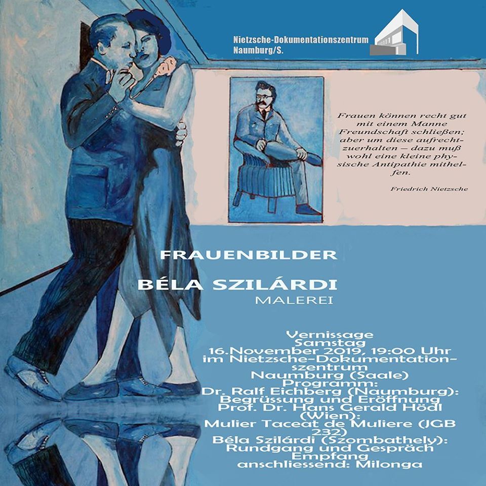 Szilárdi Béla képeiből nyílik kiállítás a Nietzsche-Dokumentationszentrumsban, Naumburg városában november 16-án, s bár Németország egy kicsit messze van, büszkék vagyunk arra, hogy egy megyénkben élő művész alkotásai szerepelnek egy ilyen rangos kiállítóhelyen. A kiállítást megnyitja a nemzetközileg elismert Nietzsche-szakértő, Prof. Dr. Hans Gerald Hödl.