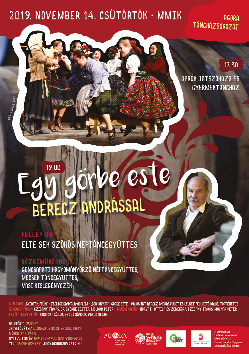 Duhajság, korhelység, borvirágos jókedv - az Agora Szombathelyi Kulturális Központ idei táncházsorozatában Berecz András és a Szökős „görbe estéje", majd gömöri bál várja az érdeklődőket.