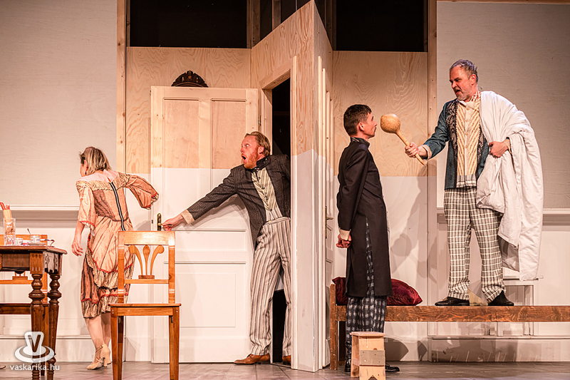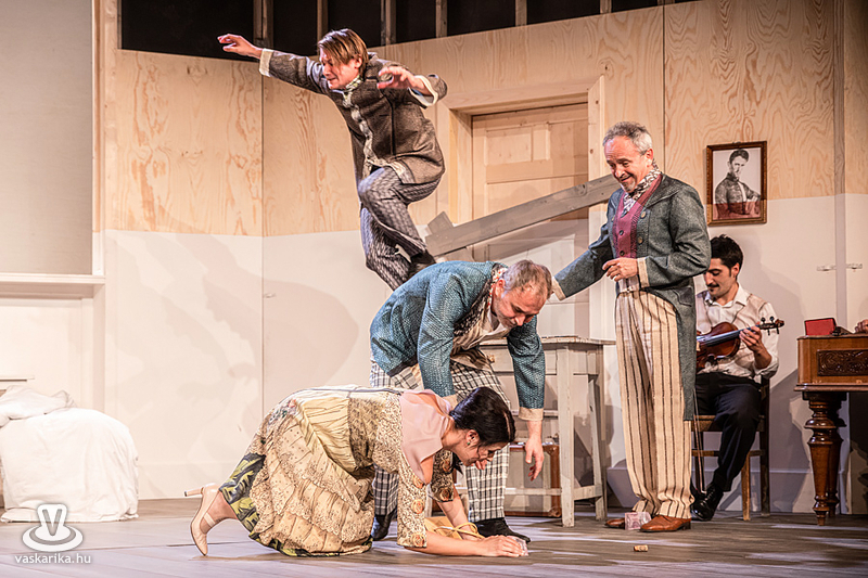 A hangulatot Kovács Márton és „szedett-vedett népi zenekara" - Kovács Márton (hegedű), Horváth Dániel (hegedű, brácsa), Horváth Ferenc (cimbalom), Nagy Olivér (bőgő) - játéka emeli. Tóth Richárd koreográfiájának köszönhetően minden él és vibrál a színpadon. A sokszereplős zenés-táncos vígjáték a szórakoztatás mellett korkép is, és nemcsak a 19. századról.