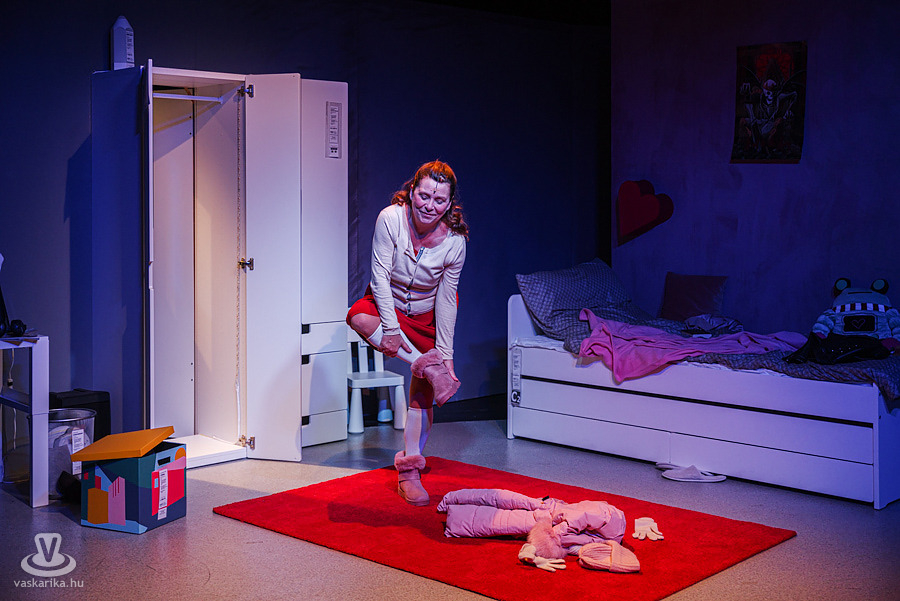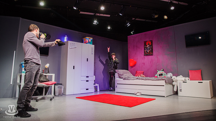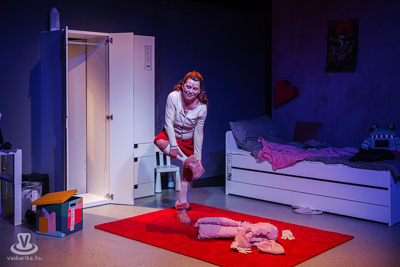 Amikor belépünk a Stúdiószínpad termébe, egy bájos lányszobát látunk magunk előtt tipikusan lányos berendezéssel, fehér szekrénnyel, íróasztallal, aranyos jegesmedvével a kis fehér székben. Első pillantásra minden olyan világosnak, tisztának tűnik, akár egy hepienddel végződő romantikus regény is kezdetét vehetné. Kontrasztként azonban ott a vörös szőnyeg, a vörös párna és a szív a falon, mintegy előre sejtetve, hogy itt valami egészen másról lesz szó. Stuci egy teljesen mai lány, gimnáziumban tanul, szereti a rockzenét, van barátja, és mégsem teljes az élete. Az anyjával (Németh Judit) való kapcsolata egyáltalán nem mondható felhőtlennek, de hát ebben az életkorban melyik családban nem fordulnak elő veszekedések? Stuci a barátjánál, Zsomernél talál menedékre. A lány, a barátja és az anya egymásra szerkesztett monológjaiból tárul elénk az áldokumentarista történet, mely valós esetek tanulmányozásából született. A legmegdöbbentőbb az, hogy Erika nem egy kőszívű, semmi jó tulajdonsággal nem bíró anya, aki teljesen elutasítja a lányát, és Stuci sem velejéig romlott, érzéketlen tinédzser, valahogy mégsem sikerül kommunikálniuk egymással, frusztrációjukat veszekedésben vezetik le. Keresik az utat egymáshoz, és mégsem találják meg. Zsomer is tele van jó szándékkal, aztán valahogy mégis tragédiába torkollnak az események.