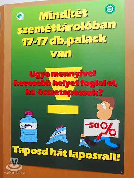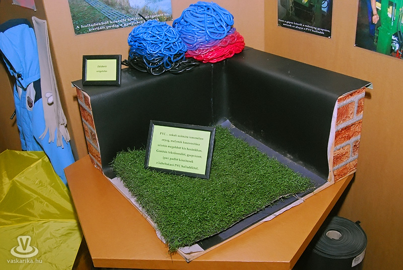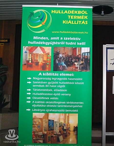 A kiállítás 8 depóra lett osztva, úgymint üveg, papír, építőanyag, műanyag, gumi, komposzt, fém, fa, illetve azt is megtudhattuk, hogy Magyarországon (és ezen belül régiónkban is) melyek azok a cégek, vállalkozások, akik az adott hulladék feldolgozását felvállalták.