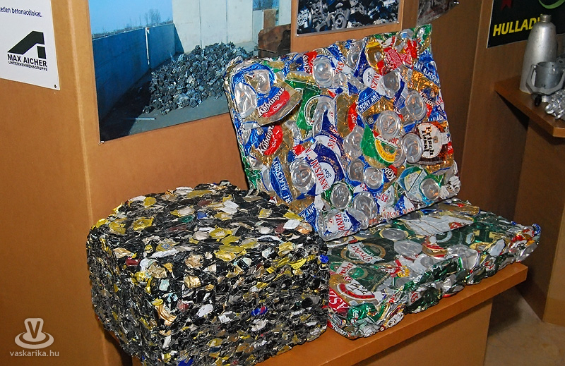 A kiállítás fémgyűjtő részlegénél egy kockára összezsugorított kis Polskira lettünk figyelmesek. No, gondoltunk magunkban, ebbe sem tudnának többen beszállni, mint az eredeti formájába. Tovább haladva a fémdobozok felé, főhajtással emlékeztünk meg a hősi halált folyt sörök emlékére, majd a komposzt részlegnél bekukkantottunk a műanyag tarolóedénybe, hátha a sok falevél és fű átalakult rakott krumplivá, ugyanis egy csöppet éhesek voltunk.