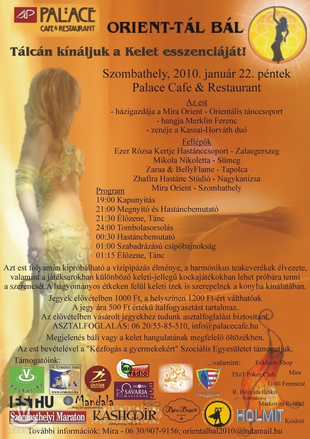 Az ínyenc bálozók az idei báli szezon képzeletbeli tálcáján válogatva egy pikáns, keleti csemegét is felfedezhetnek. Az Orient-Tál Bált szervező Mira Orient hastánccsoport, a Kézfogás Egyesület és a vaskarika.hu internetes portál kreativitását megtapasztalhatták már a tavalyi Savaria Karnevál Civil Korzóján, és az I. Kézfogás Fesztiválon. A Mira Orient táncosai hatalmas elismerést arattak a Nádasdy Történelmi Fesztiválon és a II. Westoriental Hastáncgálán.