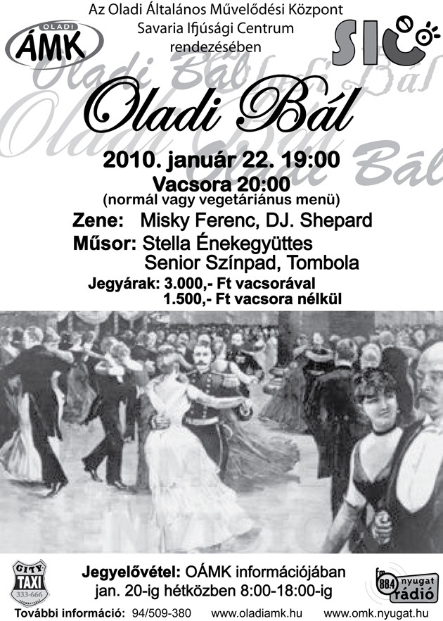 Január 22-én, pénteken első alkalommal kerül megrendezésre – hagyományteremtő szándékkal - az Oladi Bál. Az este folyamán a Stella Énekegyüttes és a Senior Színpad szórakoztatja a közönséget. A talpalávalóról Misky Ferenc és Dj. Shepard gondoskodik.
