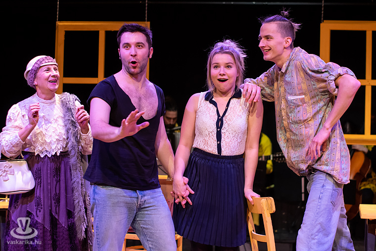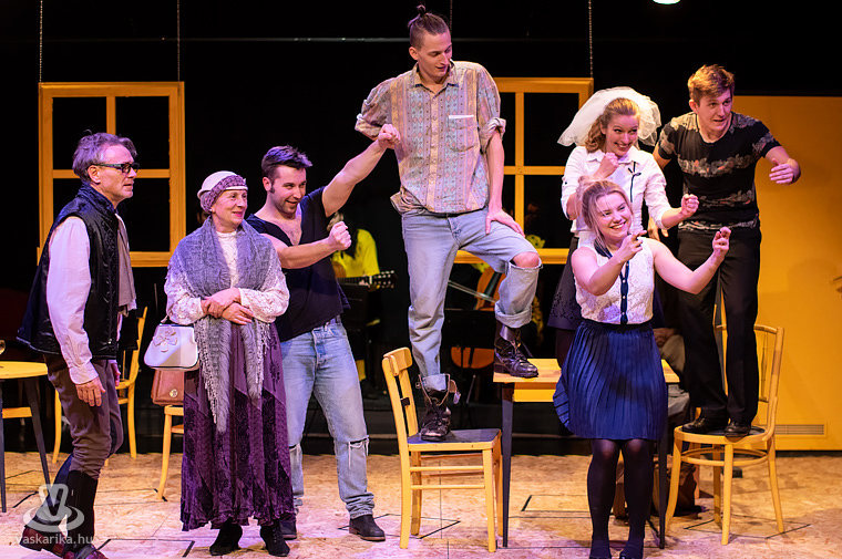 F.P: Nagyon bírták, nagyon értették. Rengeteg helyi, celldömölki utalás is van az előadásban, de ez sem akadályozta a befogadást. Nagyon vevők voltak a humorára, kicsit el is szállt az előadás, a színészek is megittasodtak tőle.