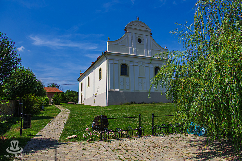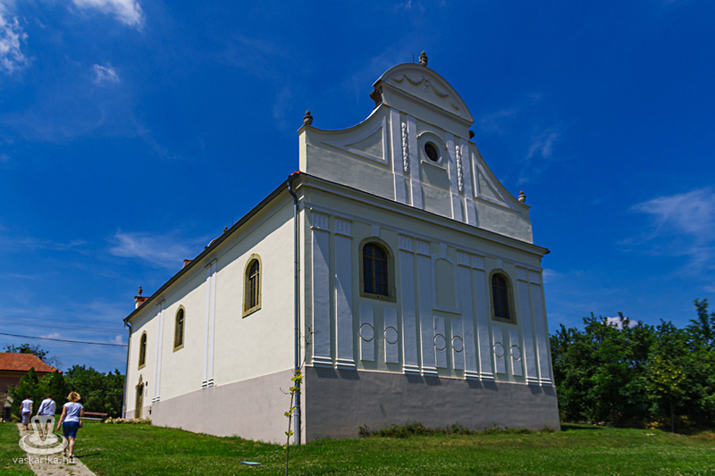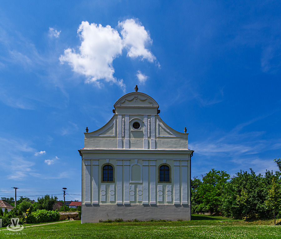 A zsinagóga építése során a krónikások feljegyezték, hogy a régi zsidó törvények szerint a nők, a gyerekek és férfiak hordták a köveket a környező hegyekből, bányákból az építkezéshez, hogy idegen kéz ne érintse őket... A templom felszentelését a bonyhádi Boskovitz Wolf (1740-1818) rabbi végezte el. A stílus olasz mesterek kezét dicséri, belső harmóniáját a négy tartóoszlop biztosítja. Közepén kupola borul a tóraolvasó asztal fölé. A középső négyszög körül két oszlopban padok 130 ember számára. Bensőséges intimitás jellemzi a belső teret, míg kívülről a barokk és a copf építészeti stílus harmonikus keveredése teszik egyikévé a legszebbeknek a magyarországi zsidó templomok közül.