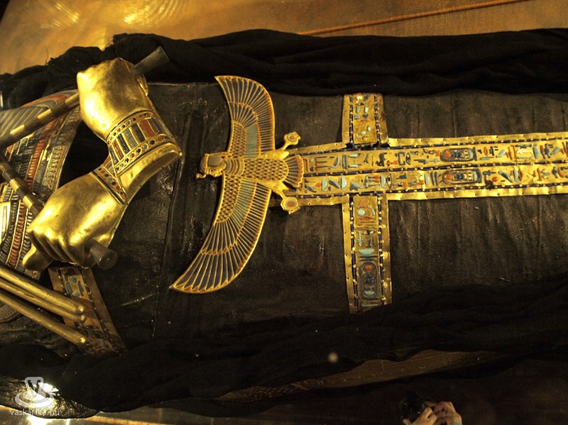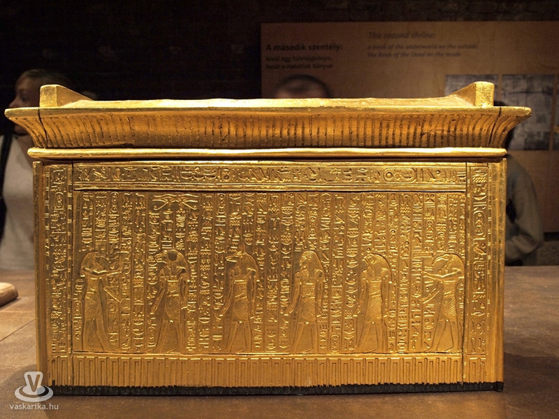 Nekünk csupa arany, ékszer drágakő volt, de Tutanhamont ezek a kincsek vezették át az Örök Élet Birodalmába. Az ókori egyiptomiaknak az arany nem csupán egy nemesfém volt, hanem maga az Istenek teste. A sír elrendezése és tartalma mind a Nagy Utazást segítette, ahogy a Fáraónak minden nap meg kell küzdenie a túlvilágon az Örök Életért.