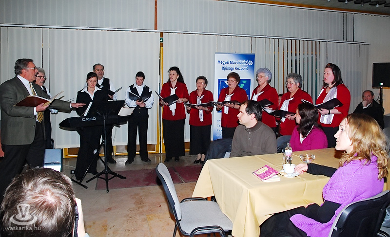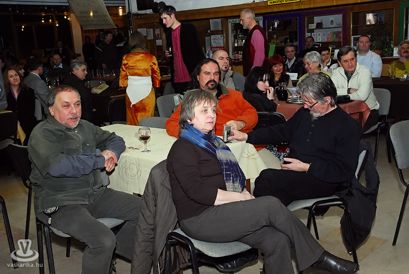 Az Egyházashetyéről érkezett Berzsenyi Daloskör nyitotta az estet Berzsenyi Dániel megzenésített verseivel. Őket követte érzelemdús dalaival a Hangraforgó együttes Győrből. Az előtér két szélén elhelyezett színpadokon felváltva zajlottak az események, így gyorsabban ment az átszerelés, így a közönség egyszerűen csak másik irányba fordította székeit. Közben volt alkalom újratölteni a borospoharakat, teáscsészéket.