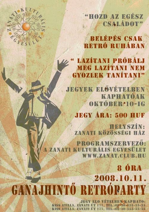 A Zanati Közösségi Ház "Ganajhintő" Retropartira hívja október 11-én, este 8 órától az érdeklődőket. A közösségi ház programjai közt szerepel további táncház, csecsemőmasszázs tanfolyam, Baba-Mama klub és asszonytorna.