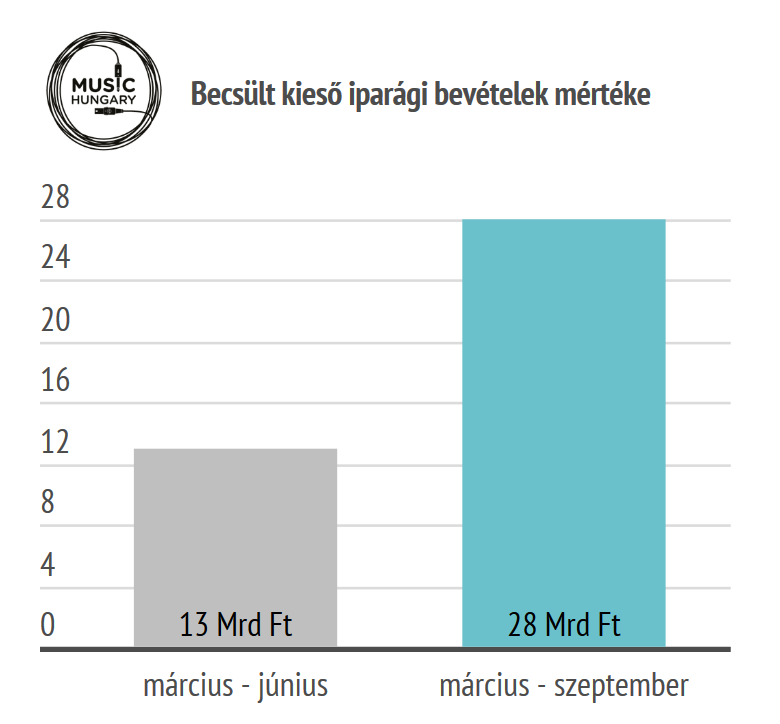 De még a pozitívabb forgatókönyv szerint is legalább 13Mrd forint jövedelemről le kell mondania az iparágnak, aminek meghatározó része, legalább 4-5 milliárd forint, a magyar zenészek és szakemberek munkabéréből fog hiányozni.