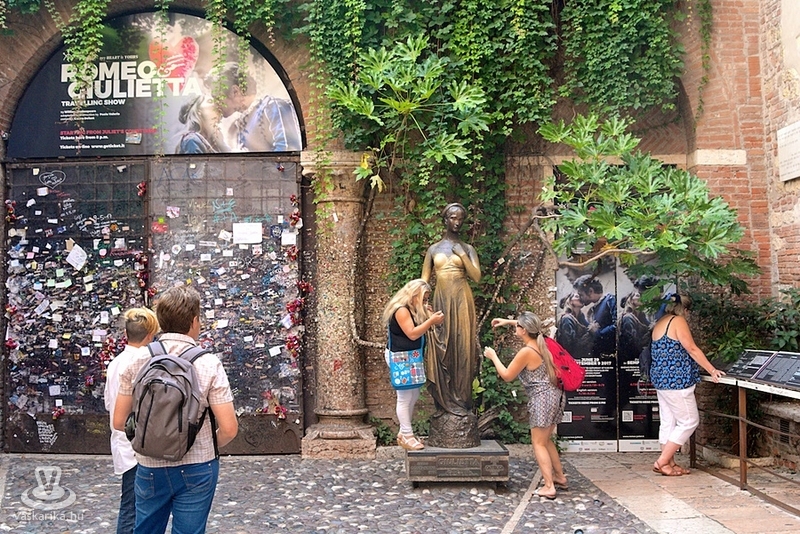 Júlia háza - Casa di Giulietta - a Piazza delle Erbe térről nyíló utcácskában található, évente másfél millióan keresik fel. Igaz, Júlia soha nem élt itt, de az olaszok tudnak valamit az idegenforgalomról. A házat a város 1905-ben vette meg a Capulet-hez hasonló hangzású Dal Capello családtól, majd 1936-ban ráépítették az erkélyt. Az udvaron álló Júlia szobor előtt szelfizni vagy a bronz melleket fényesre simogatni: ez lett a turizmus. Júlia fala szerelmi üzenetekkel, lakatok ezreivel várja a párkapcsolati zarándokokat. A helyiek sokat köszönhetnek a jó öreg Wiliamnek.