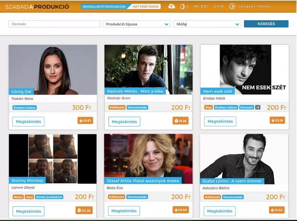 Trokán Nóra, Trokán Anna, Bata Éva, Schmied Zoltán, Lamm Dávid és Molnár Áron is csatlakozott ahhoz a weboldalhoz, ahol a művészek online tartalmakat oszthatnak meg és pénzt is kapnak érte. A „Szabad a produkció” oldalán már megvolt az első dalpremier is Ember Márk Nem esek szét című dalával.