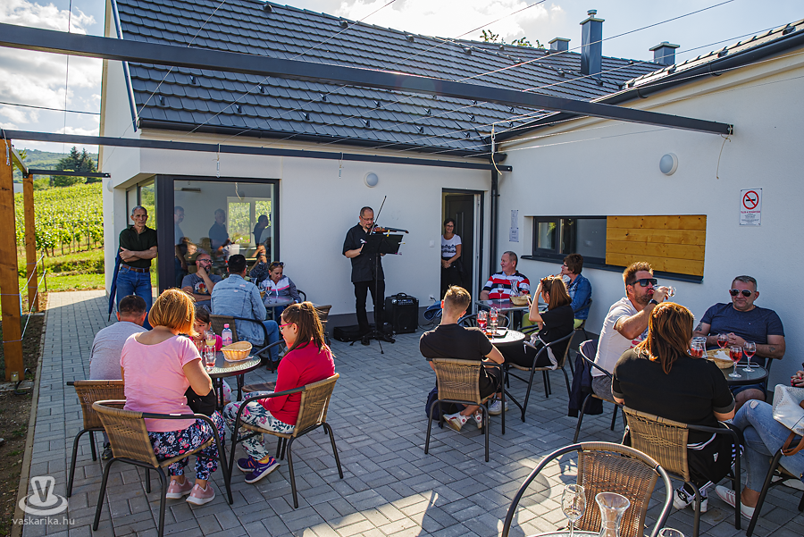 Történelmi és helytörténeti kalandozásunkat a Napostetőn zártuk, ahol a Borteraszon egy pohár bor mellett Uwe Scheer hegedűművész játékát élvezhettük.