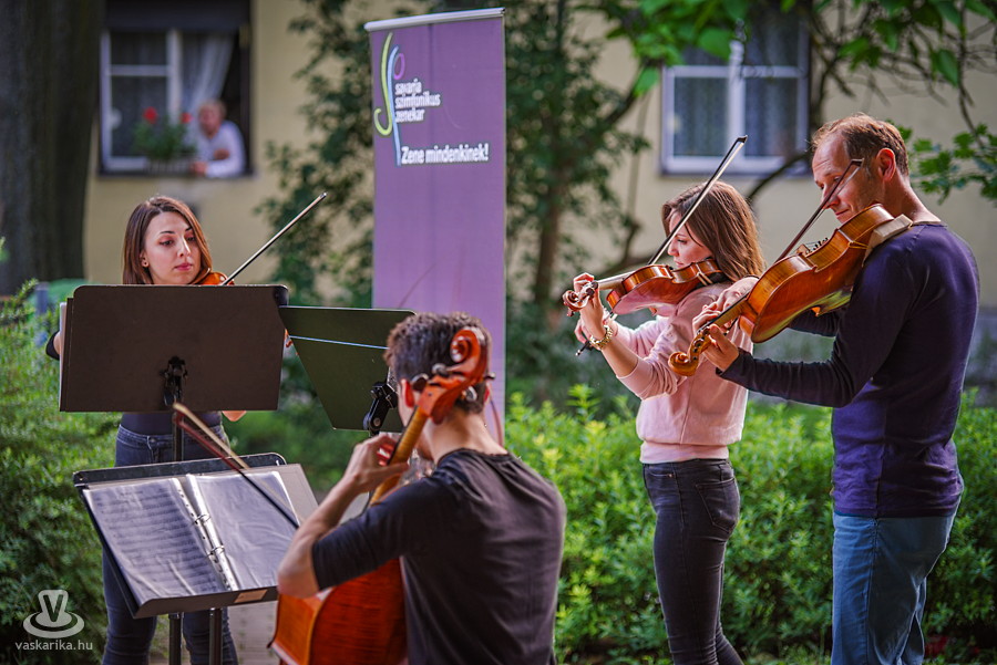 Filmekből is ismert népszerű dallamokkal örvendeztette meg hallgatóságát az Ad Hoc Vonósnégyes (Rykala Abigél - hegedű, Molnár Enikő - hegedű, Tóth Péter - brácsa, Kóta Donát - cselló). Piazzolla- és Gardel-tangók mellett James Bond főcímzene is szerepelt a közönségbarát repertoárban, sőt, a Savaria téren nem akármilyen ráadást is kaptak a koncert végére érkezők: a Queen Bohemian Rhapsody-ja szólalt meg a kvartett előadásában. Folytatás csütörtökön, mikor is a Joskar Olán a Bozsodi Quartett, a KISZ lakótelepen a Savaria Horn Quartett "szerenádozik".