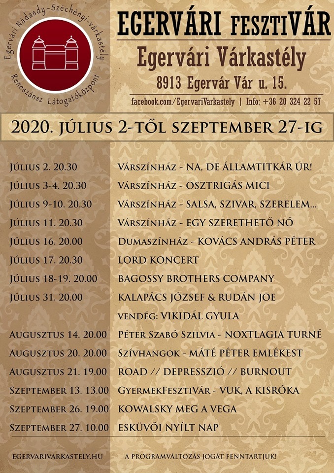 A Bagossy Brothers Company, koncertkörútja harmadik állomásaként a csodás egervári Várkastélyt választotta helyszínéül. A szépen felújított és állandó fejlesztés alatt álló reneszánsz várépítészeti emlék sok kulturális programot kínál: múzeum, színházi előadások és koncertek sora várja az ide látogatókat. Vasárnap este az udvar fölé kifeszített sátor átriuma alatt egy nagyszerű koncert részesei lehettek azok a szerencsések, akik jegyhez jutottak a limitált 490 fő alatt.