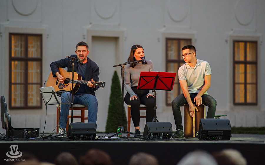 Lackfi János verses zsoltárai megzenésítve szólaltak meg a Püspöki Palota kertjében - Hétfőn megnyílt a közönség előtt a Püspökvár kertje, ahol a három alkalmas koncertsorozat első fellépőjeként a Zsoltározó Zsiványok adta elő Lackfi János környezetbe illő témájú - istenes - verseit megzenésítve.