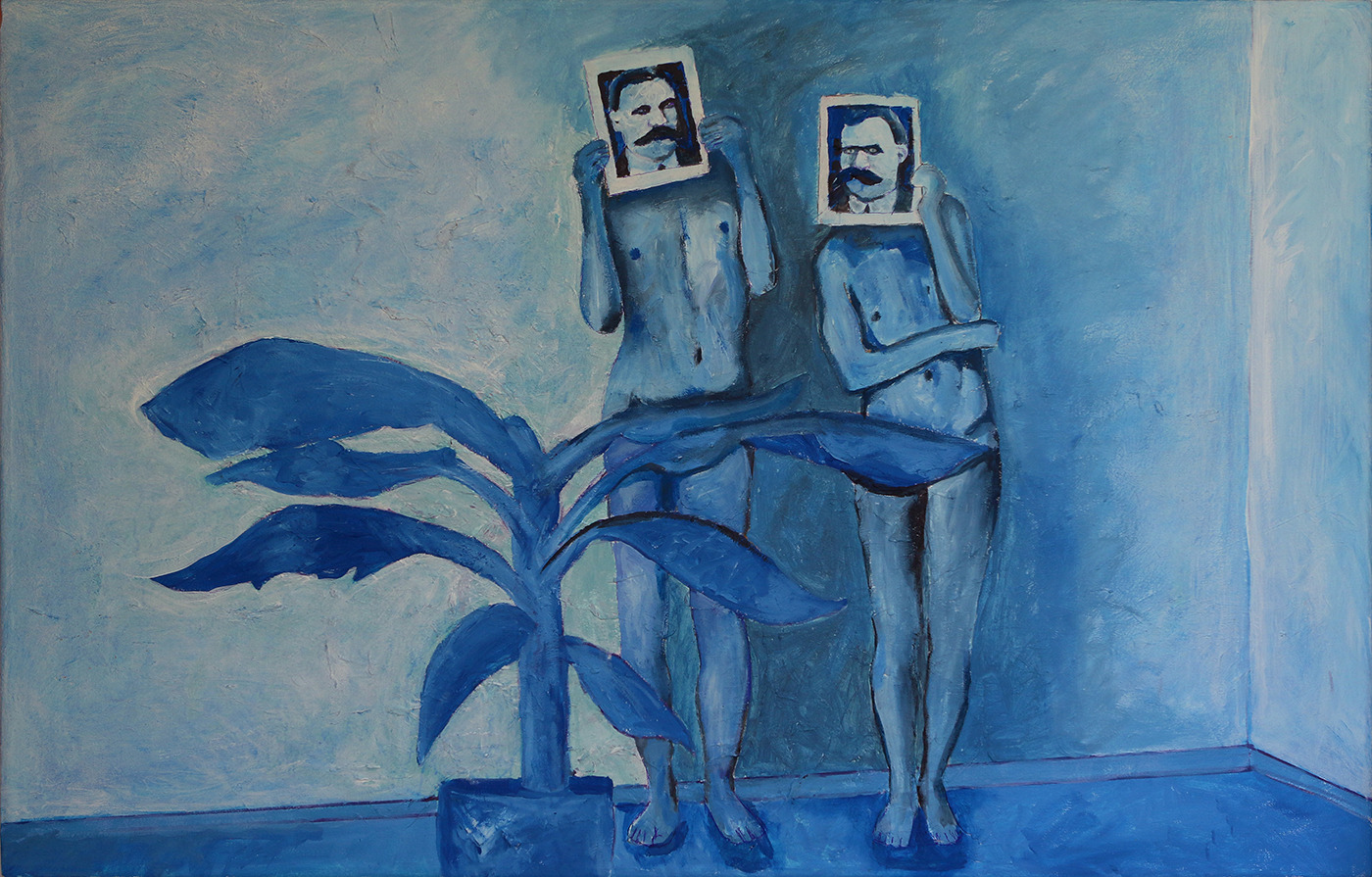 Szilárdi Béla: Ketten Nietzsche akarnak lenni, 2018, akril, csalánvászon, 80x124 cm
