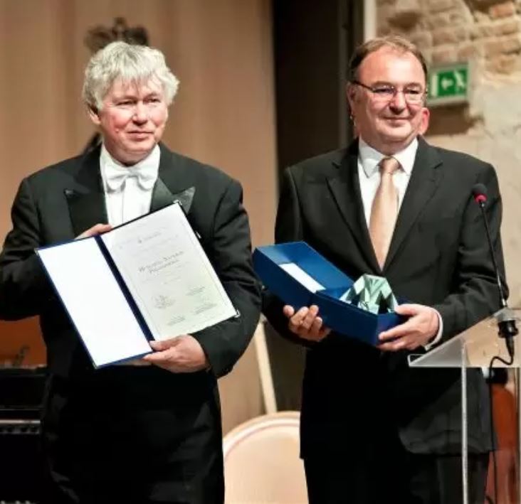 Kocsis Zoltán és Kovács Géza az NFZ-nek odaítélt Visegrád-díjjal Fertõdön 2014-ben. Fotó: MTI/Krizsán Csaba
