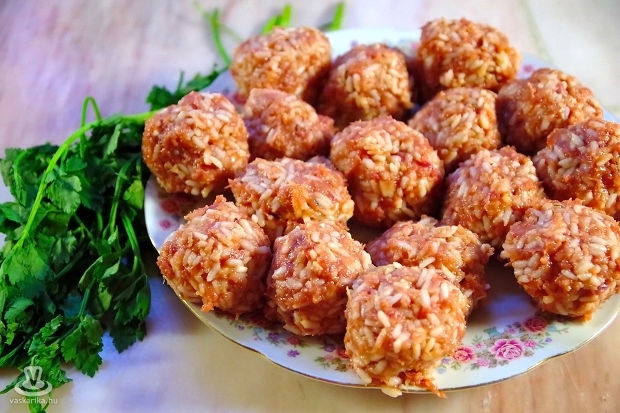 A töltelék áll darált húsból, főtt rizsből, tojásból és fűszerekből. Mehet bele egy kis sült vöröshagyma és pici pirospaprika is. Itt megint tér nyílik a saját fantáziánk kiélésére. Max. arra kell figyelni, hogy ne legyen túl lágy a töltelék, mert ha gombócokban rakjuk bele, szétesnek. Ilyenkor egy kis liszttel segíthetünk a dolgon. Ha paprikába töltjük, ne tömjük meg nagyon, mert elrepedhet. Lehet nyers rizzsel is, de akkor hosszabb a főzési ideje, és meg is dagad, szóval....., csak a baj lesz vele.