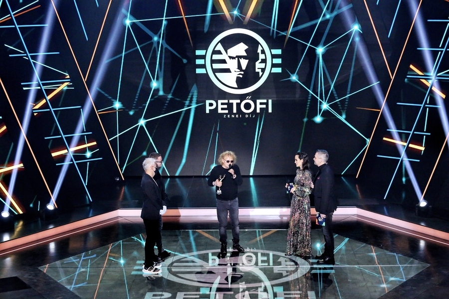 Az MTVA Sajtóosztálya által közreadott képen az életműdíjas Horváth Charlie (k), mellette a Petőfi Zenei Díj alapítói és átadói, Fülöp Zoltán (b) és Lobenwein Norbert (b2), valamint Rókusfalvy Lili (j2) és Harsányi Levente (j) műsorvezetők a Petőfi Zenei Díjak átadása televíziós felvételén az MTVA Kunigunda útjai gyártóbázisának stúdiójában 2021. január 21-én. A Petőfi Rádió és az M2 Petőfi TV névadóját, Petőfi Sándort formázó szobrokat tizenkét kategóriában kapják a hazai könnyűzene legjobbjai, immár ötödik alkalommal. MTI/MTVA/Kaszner Nikolett