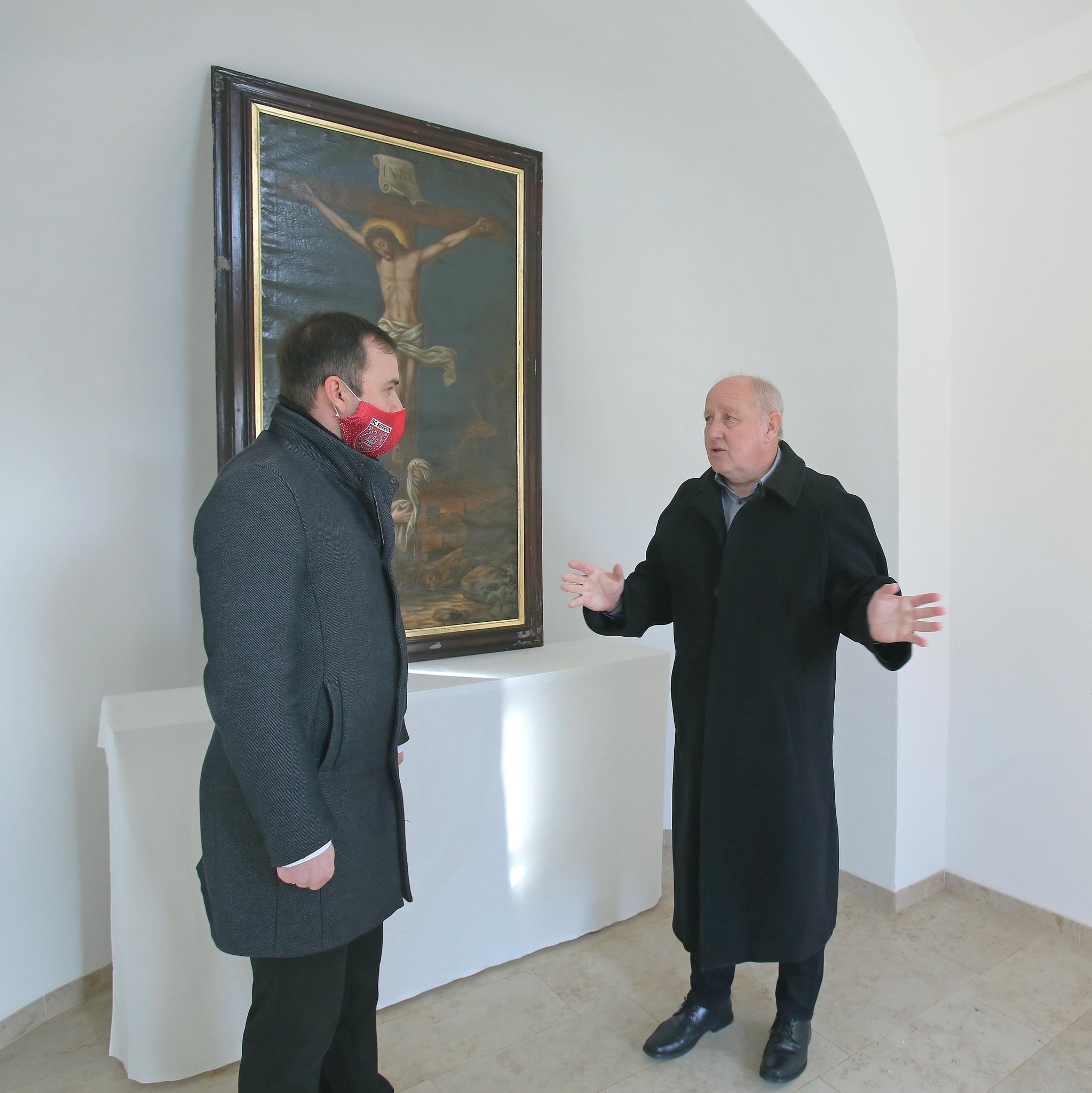 Barcza Attila fideszes országgyűlési képviselő (b) és Csorba János polgármester a nagycenki Remetekápolna átadásán 2021. január 28-án. A kápolnát eredeti helyétől nem messze, a Széchenyi-kastélyhoz közelebb építették újjá egy háromszázmillió forint értékű, a Fertő táj világörökségi térség több helyszínen megvalósuló fejlesztési csomag részeként. MTI/Filep István