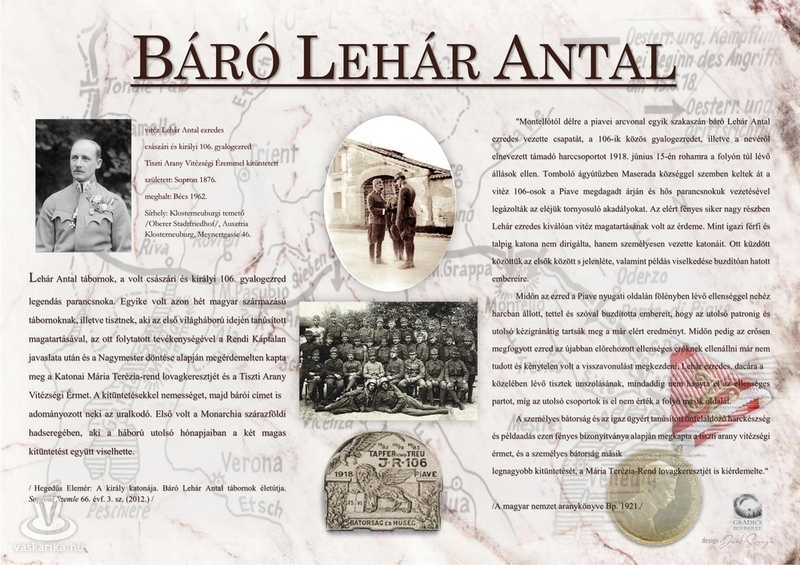 A Lehár család nemcsak tehetséges zenészeket adott Magyarországnak, hanem egy kiváló katonatisztet is. Báró Lehár Antal talpig becsületes, hazáját szerető ember és nagyszerű stratéga volt. A Szent György Lovagrend, a GRÁDICS Egyesület és más civil szervezetek úgy gondolták, hogy a legendás császári és királyi 106. gyalogezred parancsnokáról, boldog IV. Károly király tábornokáról illő módon kívánnak megemlékezni.