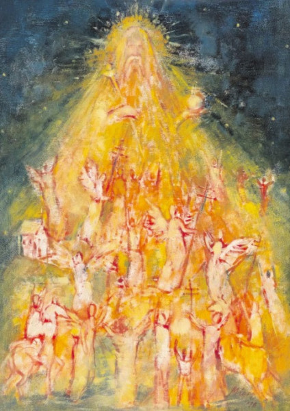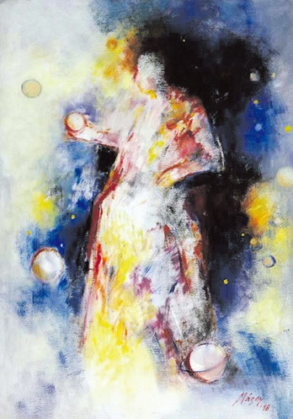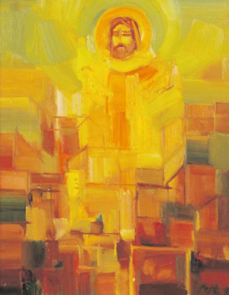 Az alkotások sora Máger Ágnes festőművész alkotásával indul. Igazi remekmű ez a festői vízió a világmindenséget teremtő Istenről, aki meleg, szeretetet sugárzó fényével emberközelivé válik, és feljogosít bennünket arra, hogy Atyánknak szólítsuk. A szombathelyi születésű művésznő Miskolcon él, a város díszpolgára, a Széchenyi Irodalmi és Művészeti Akadémia tagja. 1990 ben megalakította a Gömöri Műhelyt, amelyet ma is vezet.