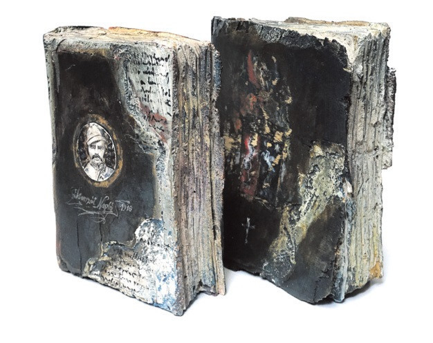 A másik képe a Mindennapi kenyerünket add meg nekünk ma kéréshez kapcsolódva a kétkötetes családi Bibliát ábrázolja a nagyapa katonaportréjával. A Biblia volt a családjuk mindennapi kenyere.