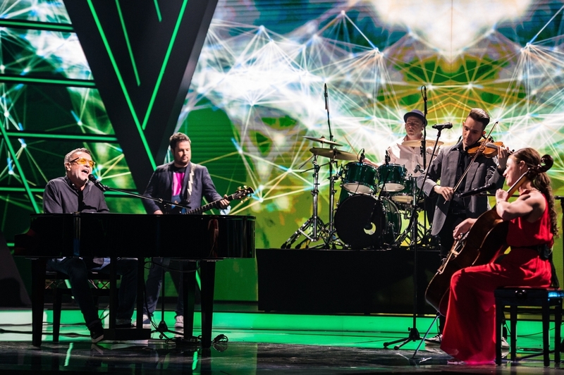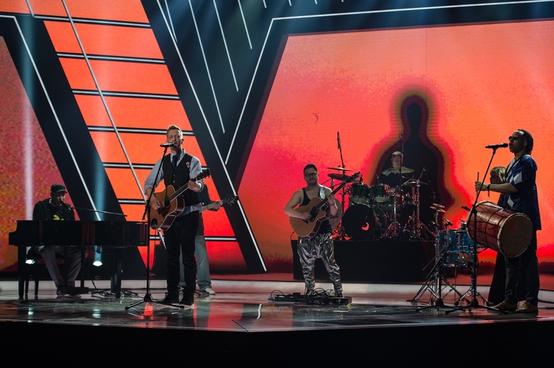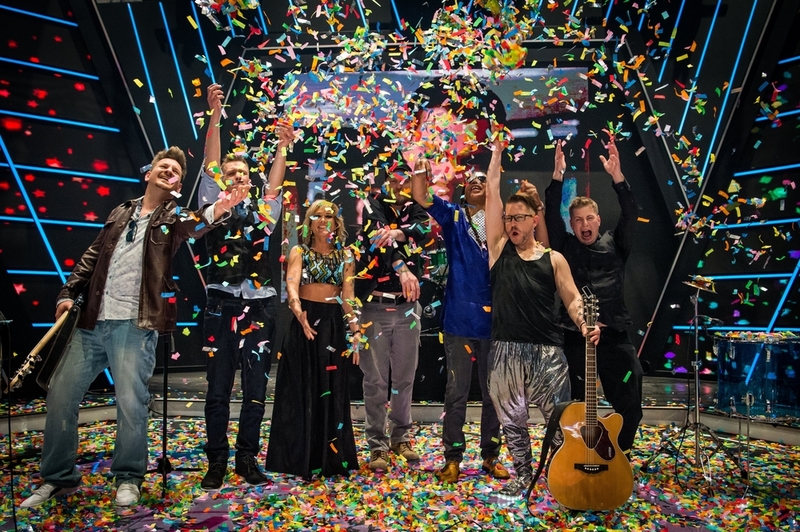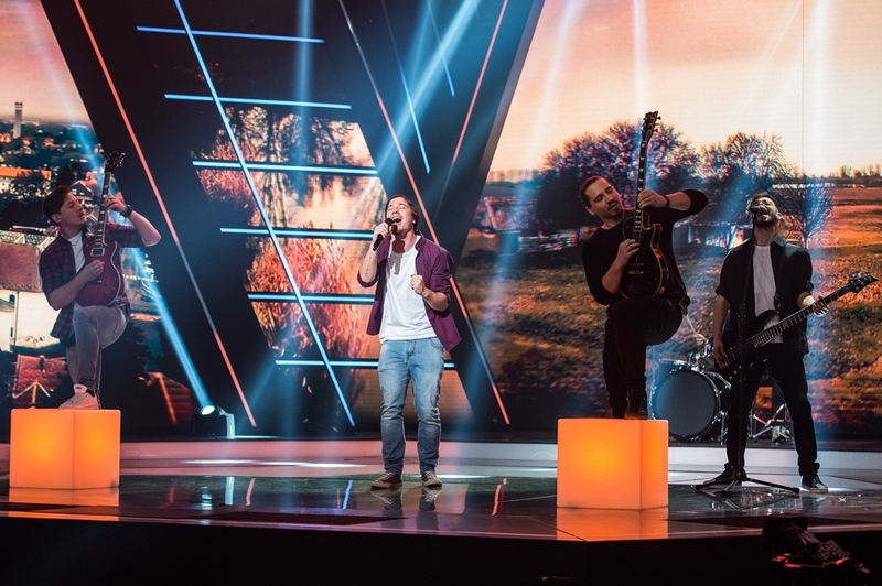 A Dal 2021 győztese, a Kaukázus együttes a televíziós show-műsor döntőjében a Médiaszolgáltatás-támogató és Vagyonkezelő Alap (MTVA) óbudai stúdiójában 2021. március 13-án. MTI/Cseke Csilla