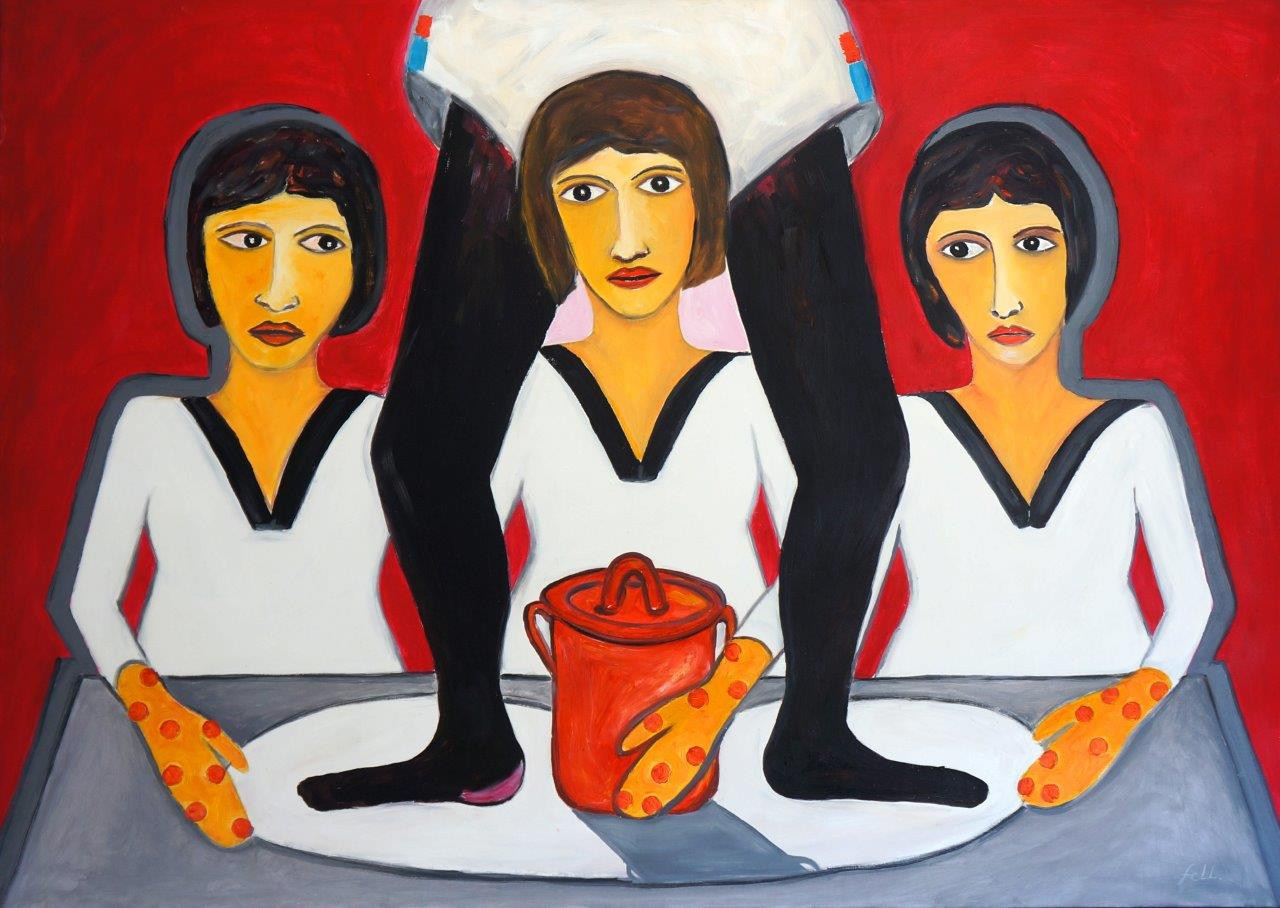 Bevallom, hogy igazi felüdülést jelentett látni a sok tehetséges fiatal képeit. Technikájukban, világlátásukban rendkívül eltérőek, de mindannyian hordozzák felgyorsult világunk frissességét. Kedvencem Gáspár Annamária, akitől több alkotás is van a kínálatban. A fiatal képzőművésznő szívesen dolgoz fel női témákat, művei nem nélkülözik a humort, iróniát, de az érzelmeket sem. Biztos vagyok benne, hogy szép jövő előtt áll, és alkotásaival sokszor találkozunk még.