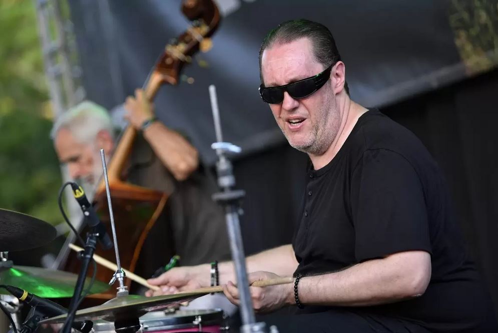 Balázs Elemér dobos (j) és Berkes Balázs bőgős, a CB Trió tagjai a Debreceni Bor- és Jazznapokon 2017. augusztus 4-én - Fotó: MTI/Czeglédi Zsolt
