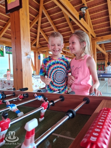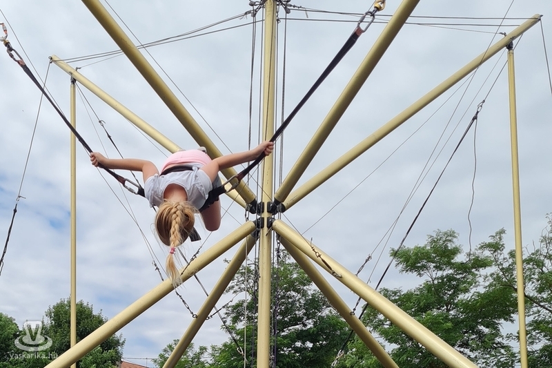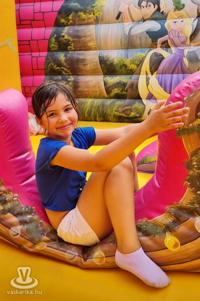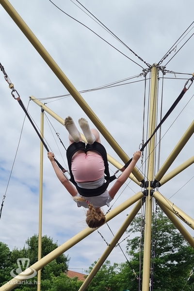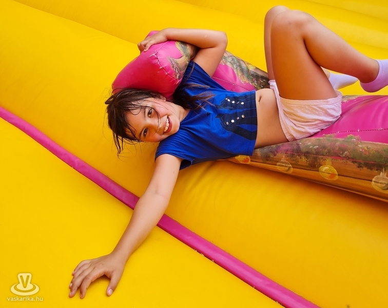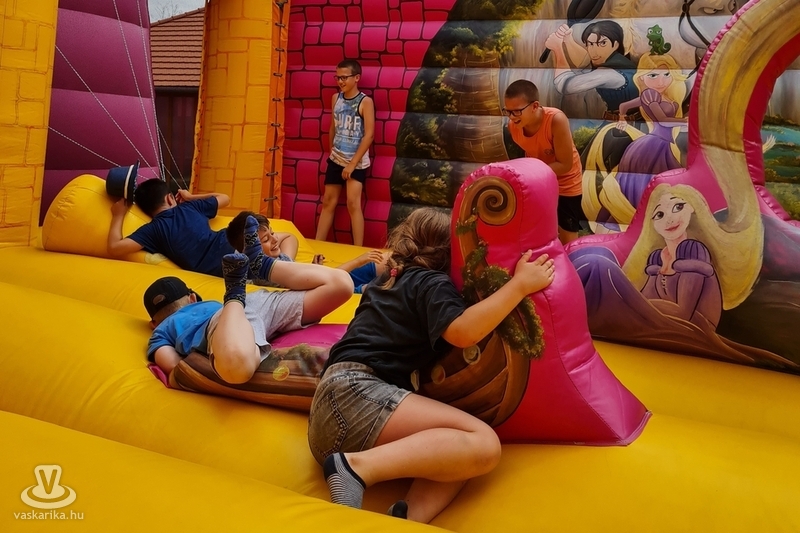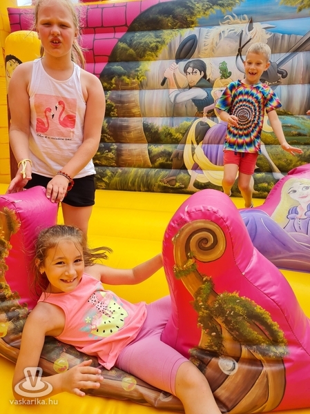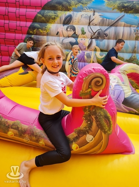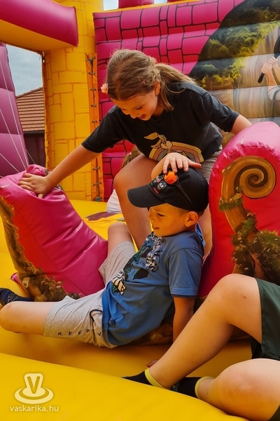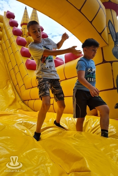 Ottjártunkkor csúcsra pörgött a légvár, a trambulinpark és számos szabadtéri játék, a fedett foglalkoztatóban pedig kézműves foglalkozások zajlottak.