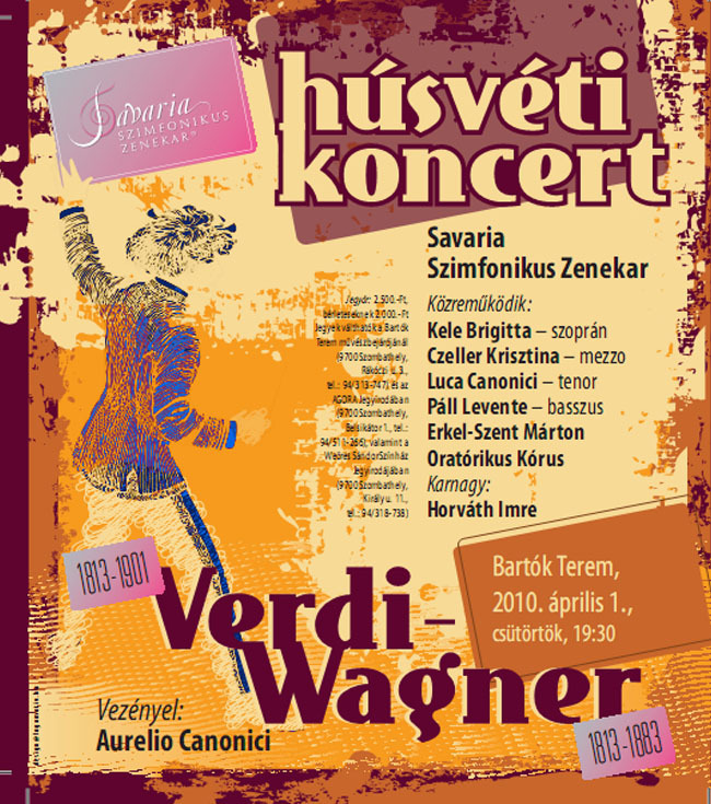 A Savaria Szimfonikus Zenekar rendkívüli húsvéti hangversenyt tart április 1-én 19:30-as kezdéssel. A műsoron kizárólag Verdi és Wagner operarészletek, nyitányok, áriák és kórustételek lesznek hallhatóak.