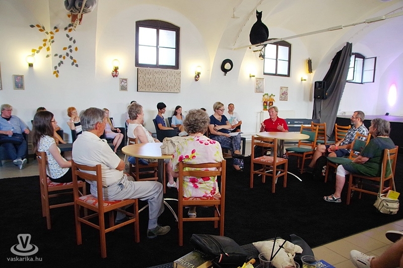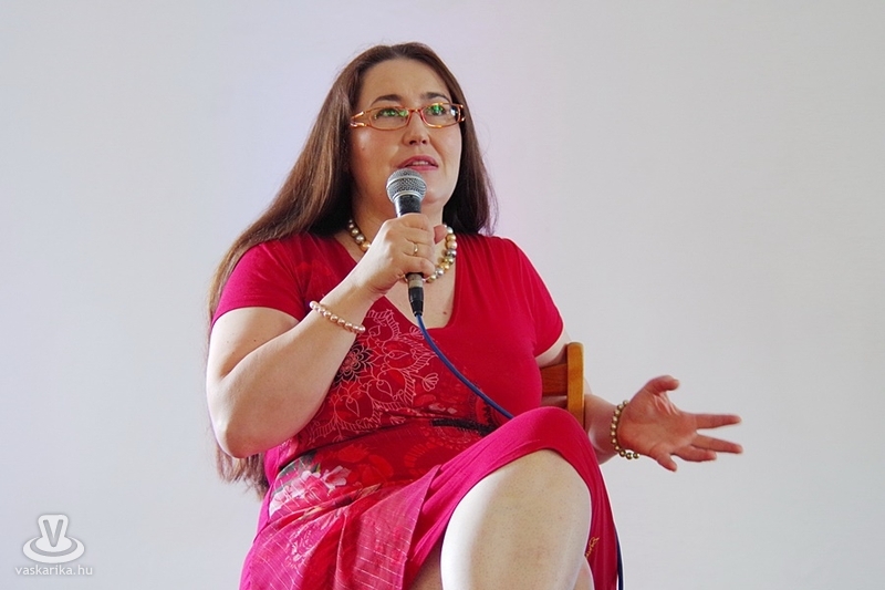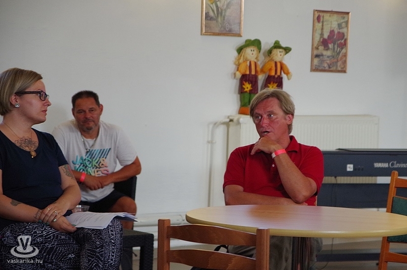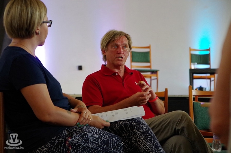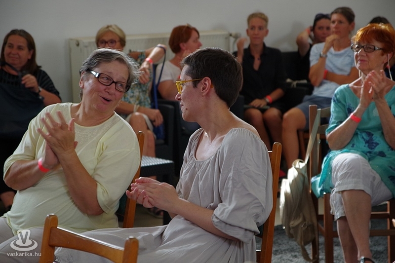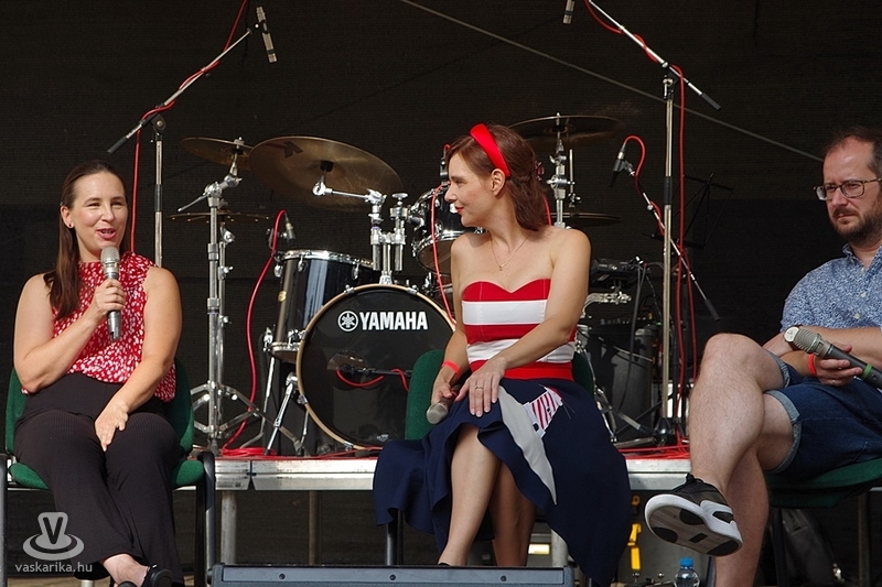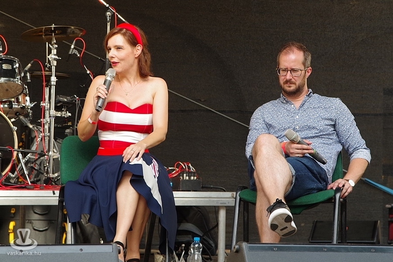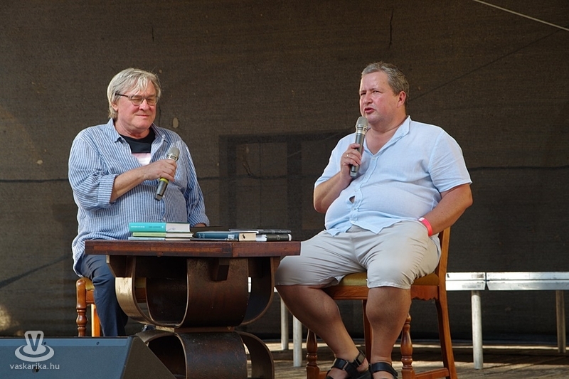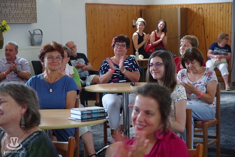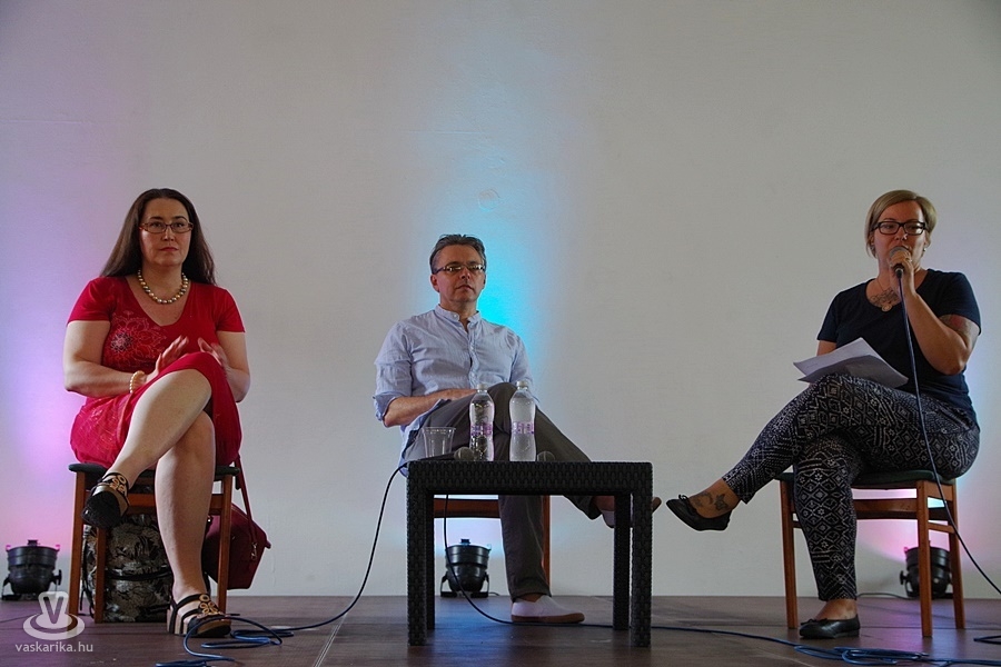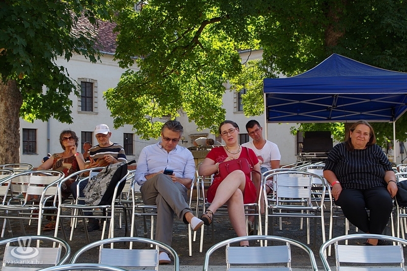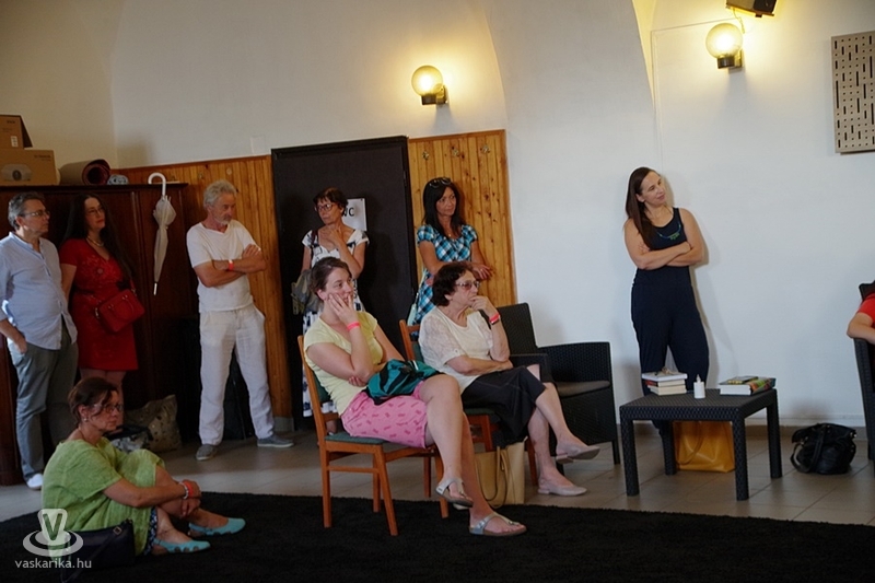 A vasárnap délután egy részét az eső elmosta, de így történhetett, hogy előbb egyedül, majd a hozzánk csatlakozó Dragomán házaspárral élvezhettem egy remek beszélgetést Molnár Krisztina Rita költőnővel. Rengeteg személyes emléket osztottak meg egymással, és velem, a lelkes hallgatósággal. Szó esett misztikus élményekről, a nem létező véletlenekről, az irányító gondviselésről és titokzatosan felbukkanó tárgyakról is. Később, az eső elmúltával megérkező látogatóknak egy, a TV-ből ismert műsor, a Lyukasóra mintájára irodalmi vetélkedőt is rögtönöztek az írók, díjak nélkül, de igazán remek szórakozást nyújtva.