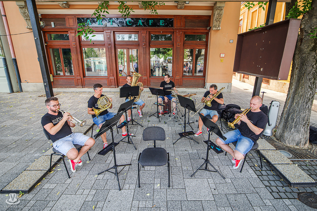 Ha van "zöld kultúra", akkor az Utcaművészeti Fesztivál programjai alapvetően ilyenek. Nincsen fényhíd, se gigalux, se megawatt - helyette van természeti környezetebe ágyazott "zenei népművelés". Mezítlábas külcsín pompázatos belbeccsel. A Savaria Szimfonikus Zenekar hat kamaraegyüttese is teraszok, galériák árnyékába húzódva hirdette a komolyzene nagyszerűségét az Art Café és az Isis Galéria előtt. Jó hír, hogy az előbbi helyen vasárnap is fogják!