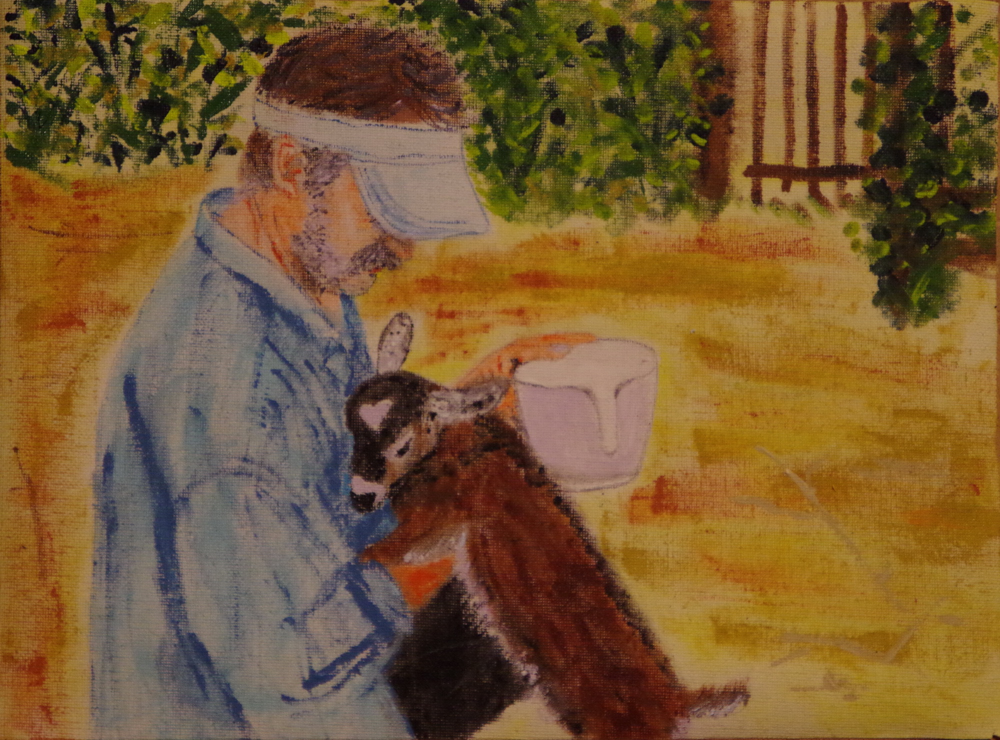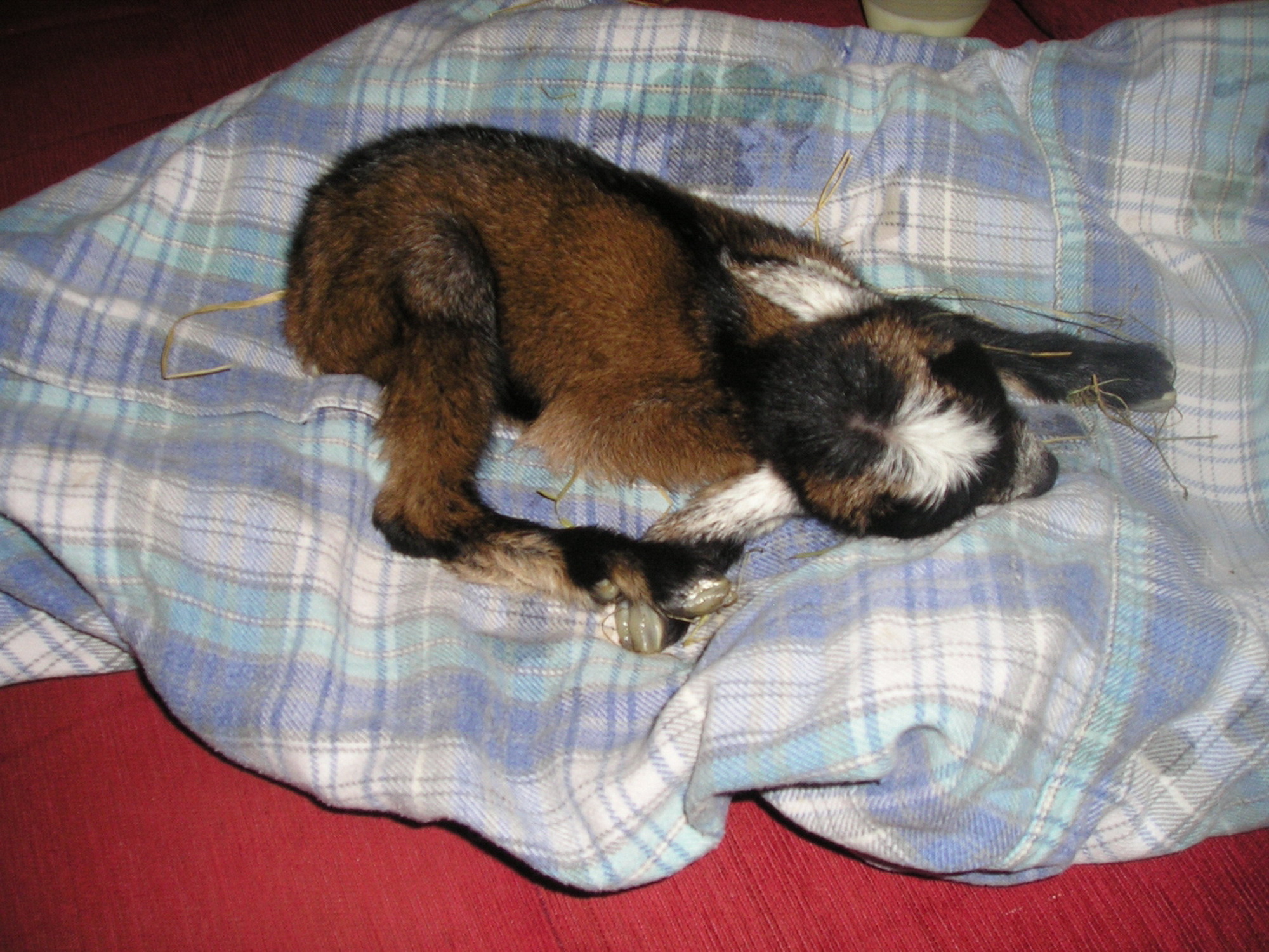Már nem emlékszem, honnan szereztünk sebtében, de ha azt reméltük, sínen vagyunk innentől, keservesen tévedtünk. Jó időbe telt, mire annyira megerősödött, hogy ki tudta szopni a tejet az üvegből. Eleinte szemcseppentővel, kiskanállal adagoltam bele, óránként, még éjszaka is. Újra olyan volt, mint mikor kisbaba kerül a házhoz, és pár óránként etetni kell. Ez a tevékenység hetekig lefoglalta a nappalaim, éjszakáim nagy részét, úgyhogy a kialvatlanságtól már én is úgy kókadoztam, mint kis védencem. Ő az etetések között aludt és nagyon lassan erősödni kezdett. És a lassan itt a lényeg! Míg tesója odakint már nagyban ropogtatta a szénát, majszolta a füvet vagy a kukoricát, Csupafül - mert így neveztük el hatalmas fülecskéi miatt - éppen a lábra állást gyakorolta. Beletelt egy jó hónap vagy talán kettő is, mire sikerült, és szét-szétcsúszó lábakon megtette az első lépéseket. Élni akart, és ezt minden percben értésünkre is adta. Soha nem sírt, kedves, bújós gida volt, a mi kis babánk, és úgy is bántunk vele.
