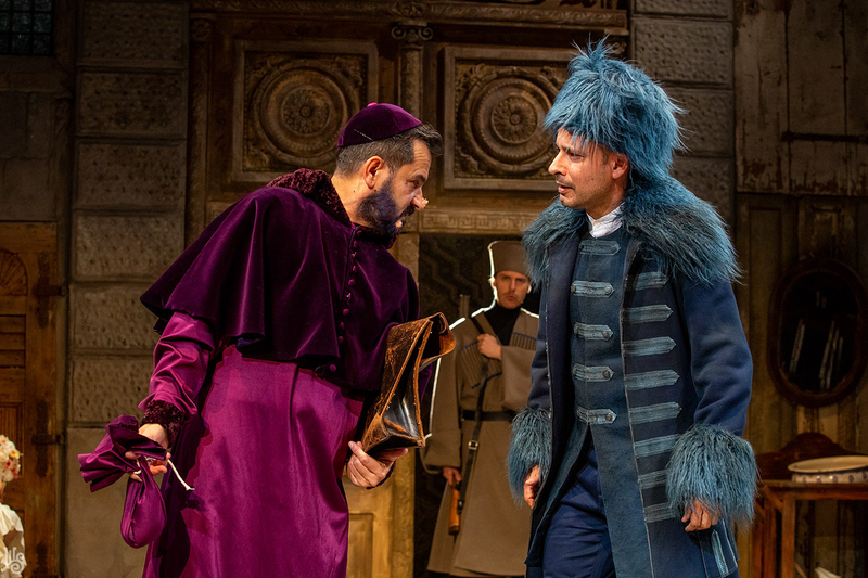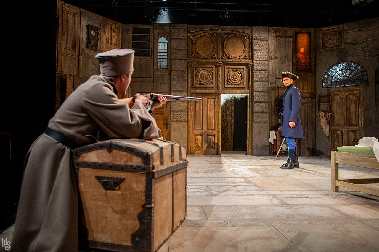 Audiberti színműve valóban „határ darab": dráma és komédia között lebeg végig, az elejétől fogva érezzük a feszültséget, egyfajta komor hangulatot, ám ezt gyakran felváltja a finom humor, az irónia, s bár maga a téma klasszikus, modern elemek is megjelennek benne, akár a szereplők öltözetében a mára való utalással, akár a nyelvezetben, mely finoman megmunkált, de ha a szituáció megkívánja, akkor szabadszájú is tud lenni. Az összeesküvés, mások félrevezetése nemcsak a barokk vagy rokokó kor jellemzője, hanem minden történelmi korszaké, a maié is, és mi is könnyen kerülhetünk olyan helyzetbe, amikor rájövünk, becsaptak minket, és döntenünk kell, hogyan tovább. A dialógusok gördülékenyek, a színészek játéka magával ragadó, pontosan eltalálták a karaktereiket. A színművet Kiss Csaba rendezte, remekül eltalálva a hangulatot a klasszikus és a modern, a történelem és a jelen között. Mari Dorottya a legjobb választás Alarcia szerepére, de a többi színész is meggyőzően tárja elénk a karaktereket. A díszlet és jelmez Balla Ildikó munkája, a hegedűs Keller Dániel.